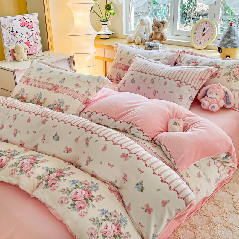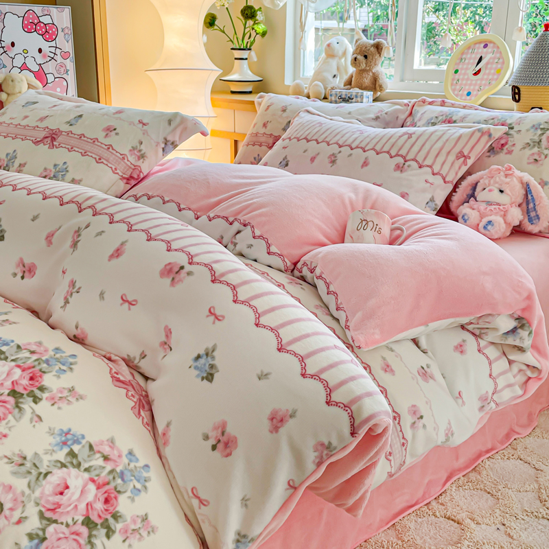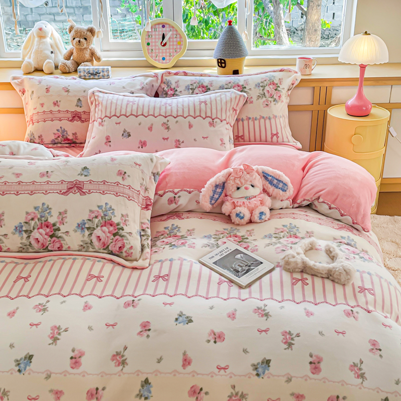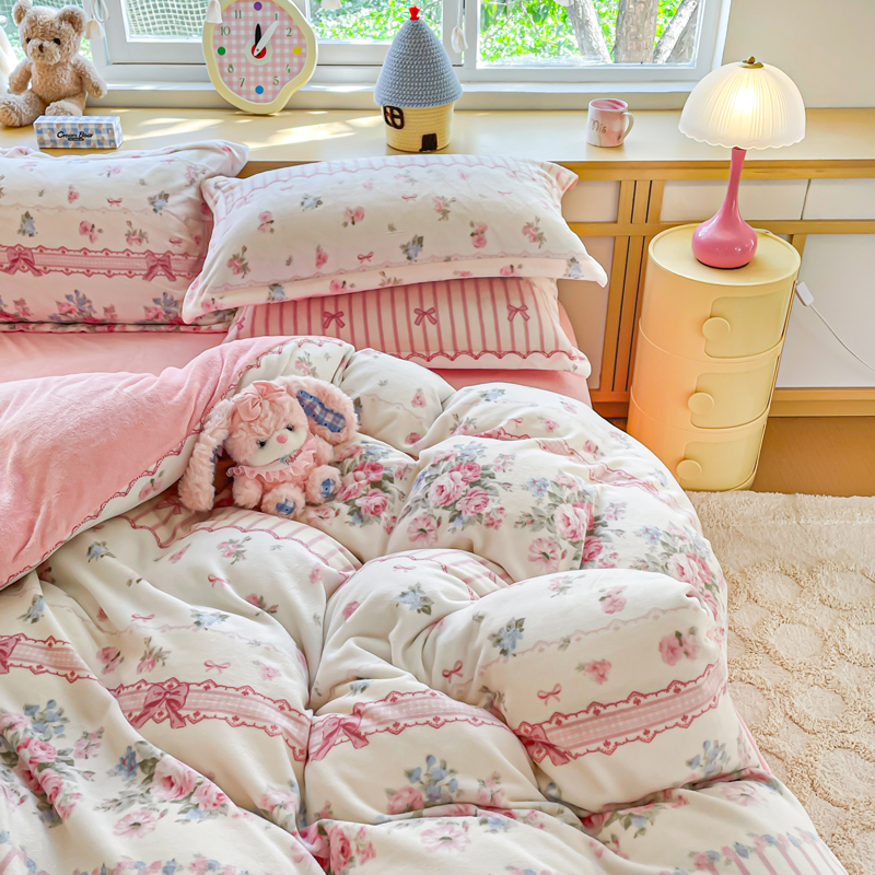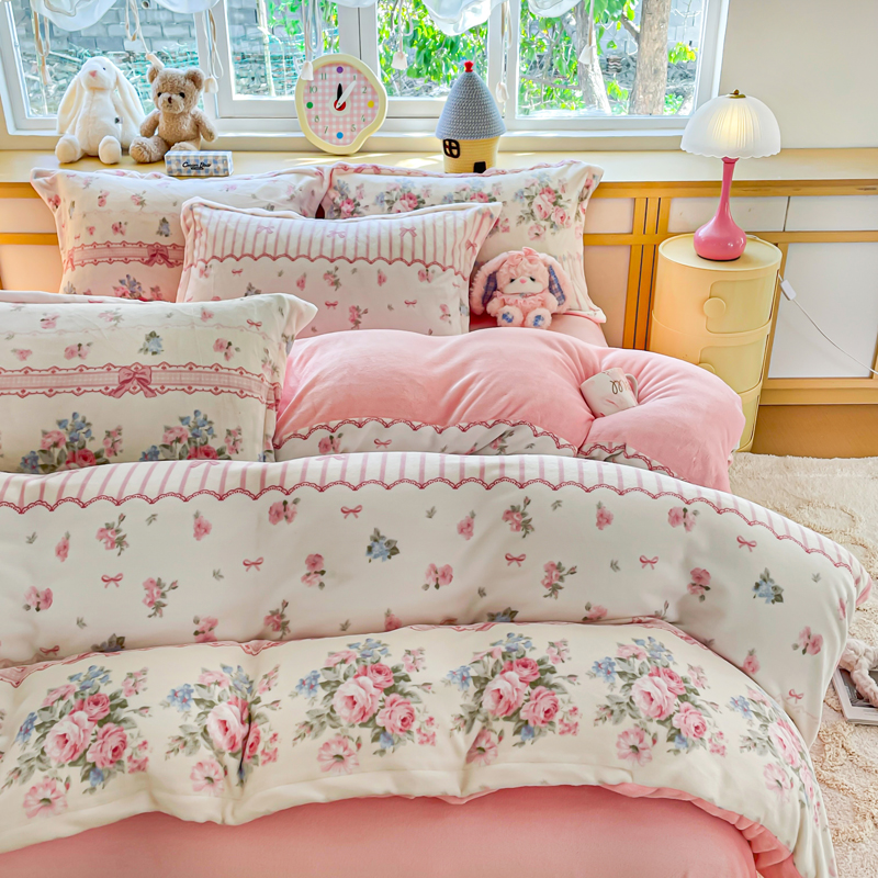 一比一 2026新款双面牛奶绒四件套 欧风花影