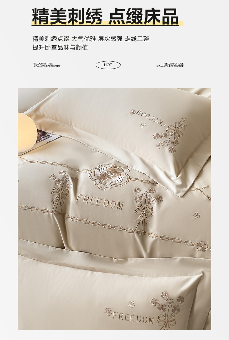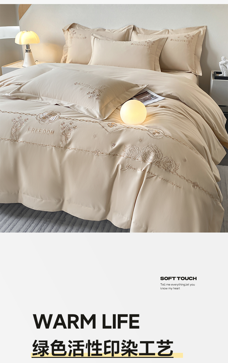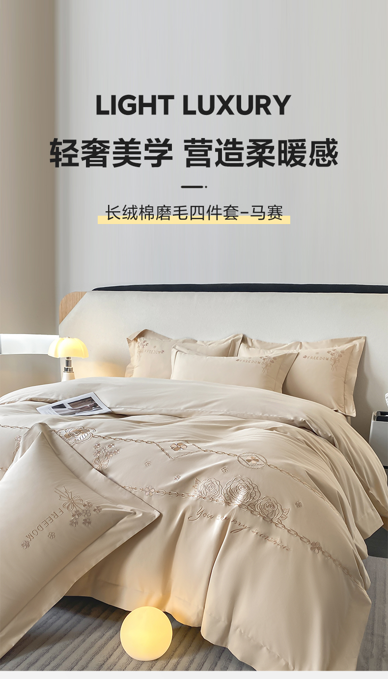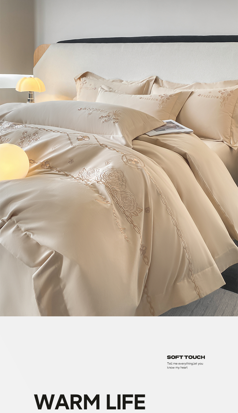 (总)桃园 2025新款全棉长绒棉刺绣绣花四件套-西西里系列,飘蓝,轻奢粉,绅士灰,香槟