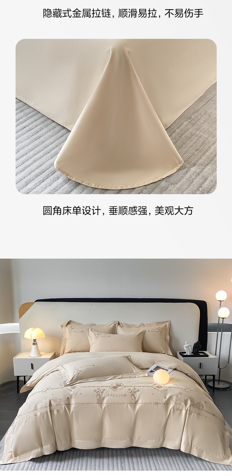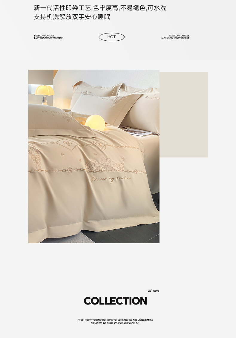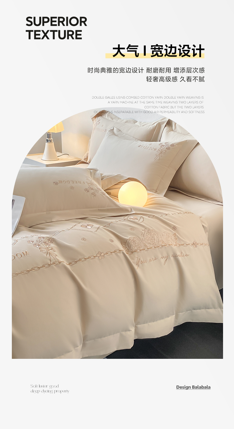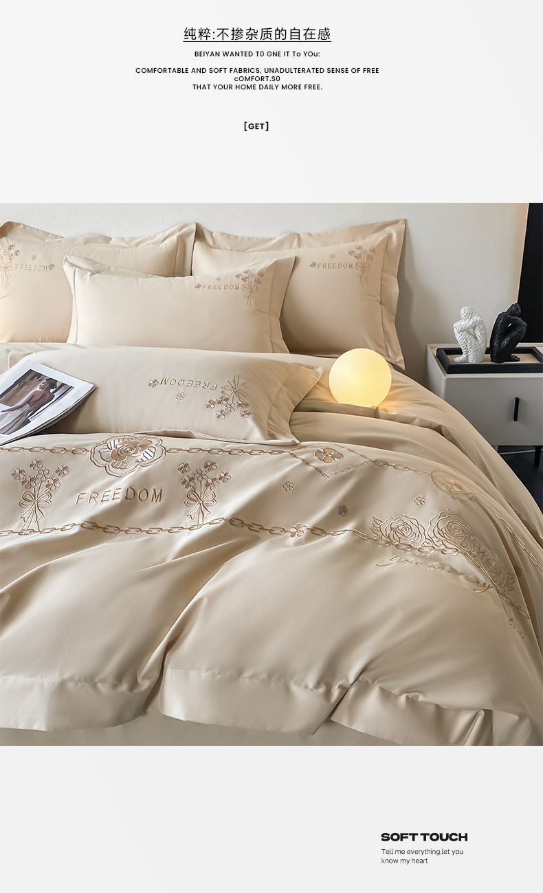 (总)桃园 2025新款全棉长绒棉刺绣绣花四件套-西西里系列,飘蓝,轻奢粉,绅士灰,香槟