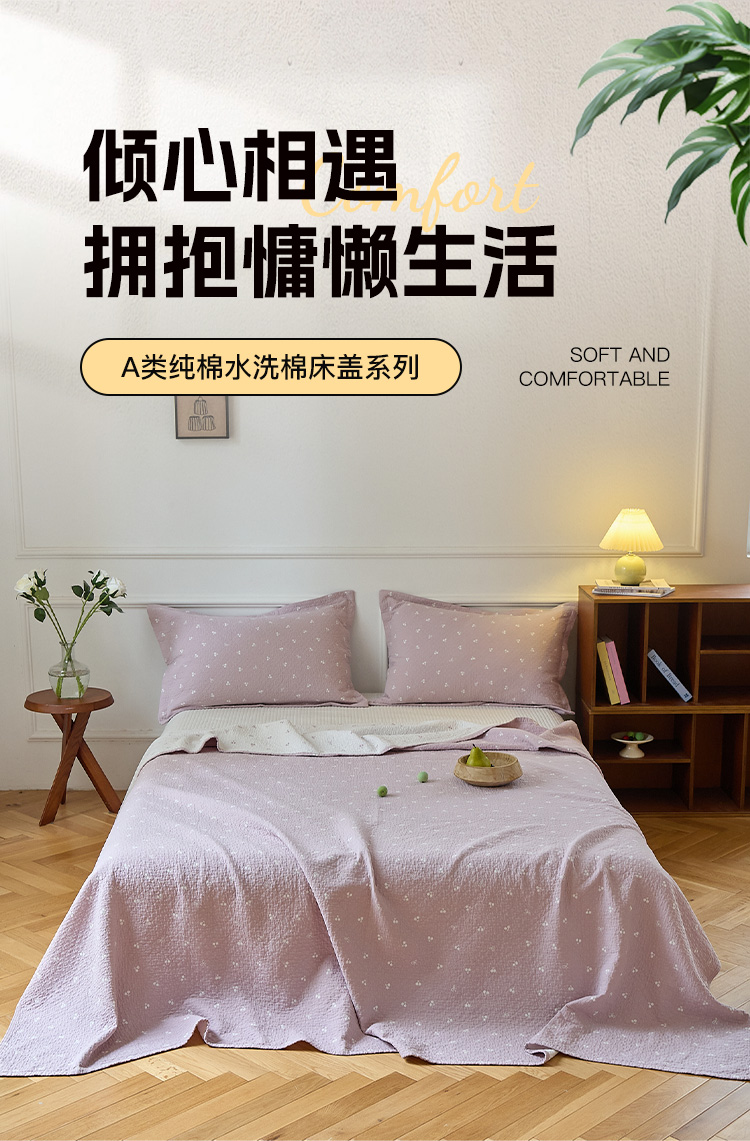 (总)沐瑟家纺 2026新款全棉四层纱布床盖-星星和心情系列,心情-粉色,心情-灰蓝,心情-卡其,星星-黄色,星星-灰色,星星-蓝色,星星-紫色,组合