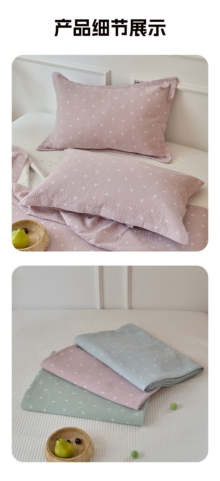 商品名称:沐瑟家纺 2025新款亲肤舒适色织提花纱布床盖三件套盖毯毯子-樱桃系列 樱桃粉色
