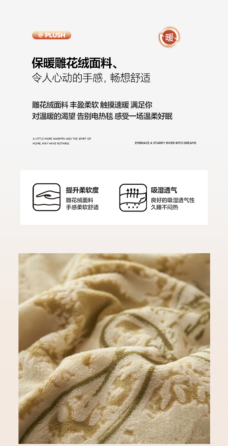 当前位置: 91家纺网 > 商品网购 > 床品套件 > 四件套 > 其它四件套 > 晨曦家纺 2025新款牛奶绒浪花四件套雕花绒床上四件套 鎏金