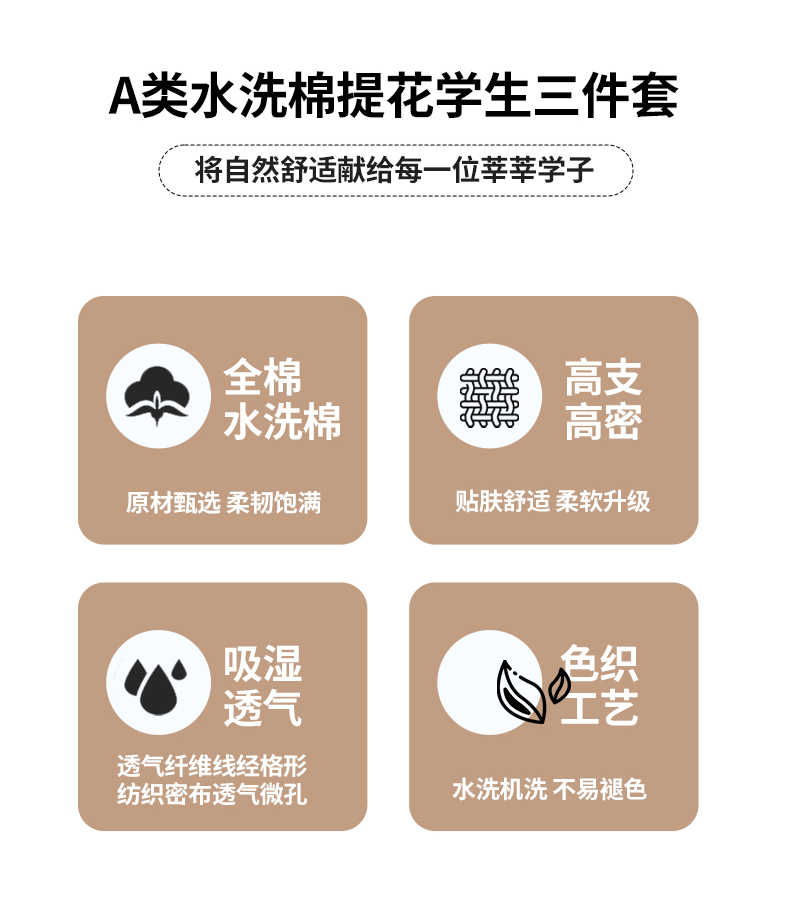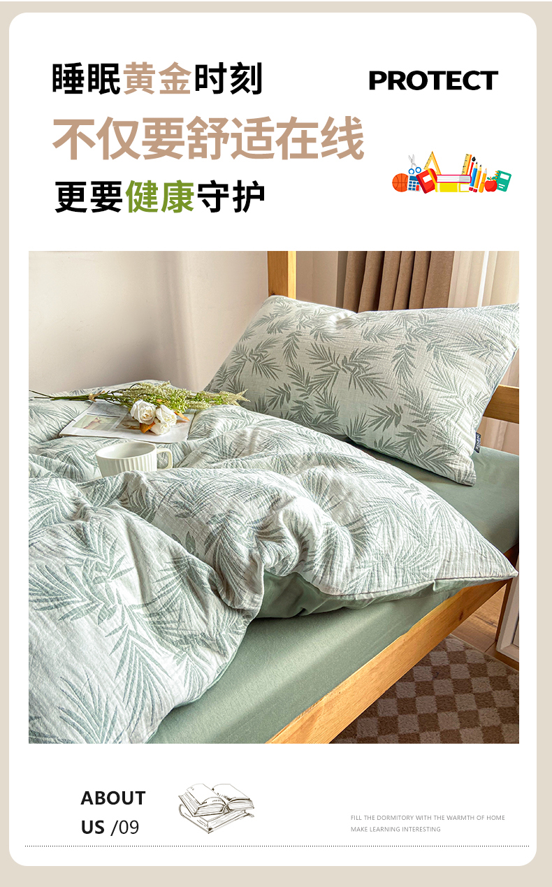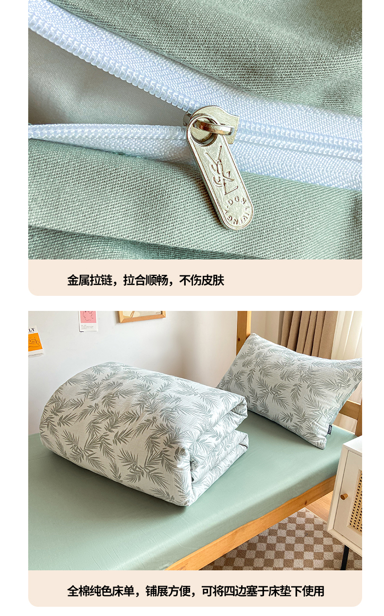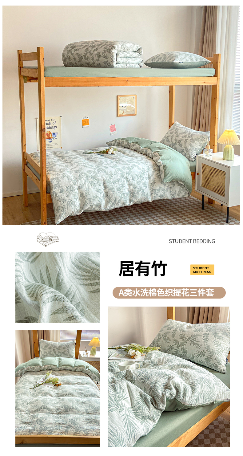 宜代光年 2025新款60S水洗棉提花学生季三件套 镜中叶-米