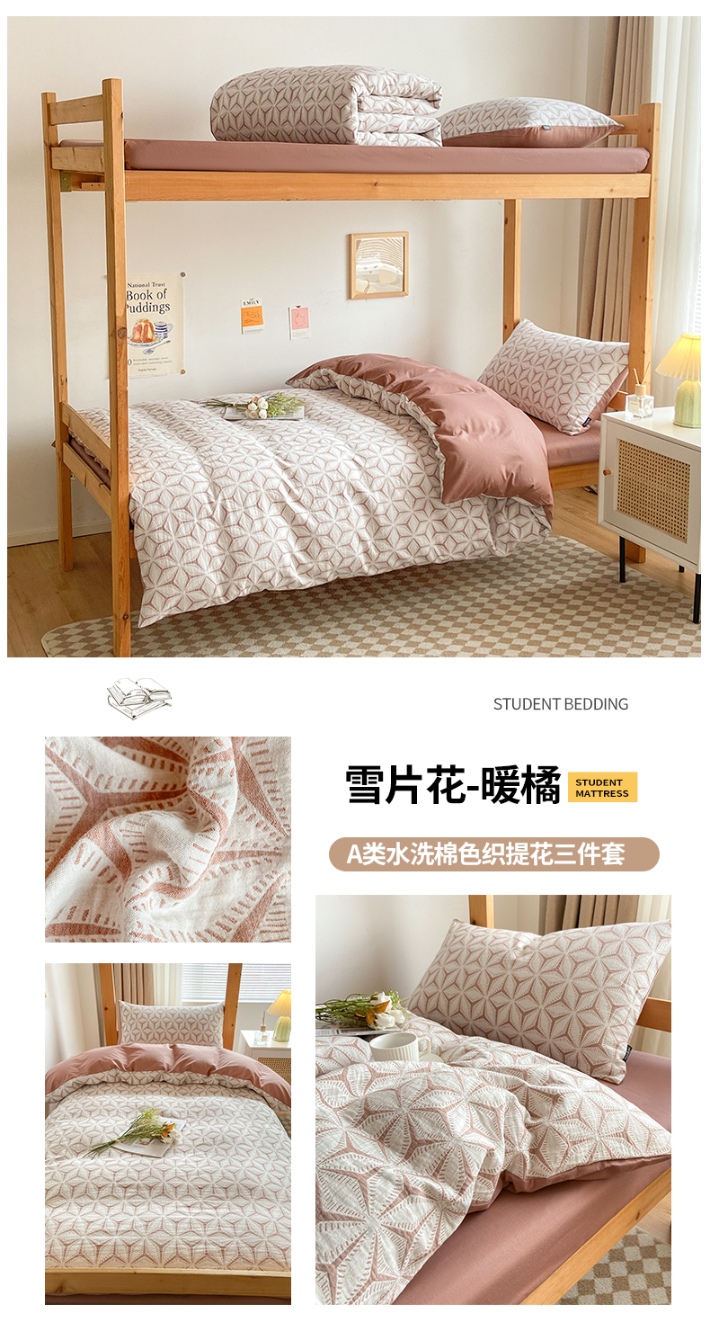 商品名称:宜代光年 2025新款60S水洗棉提花学生季三件套 镜中叶-米