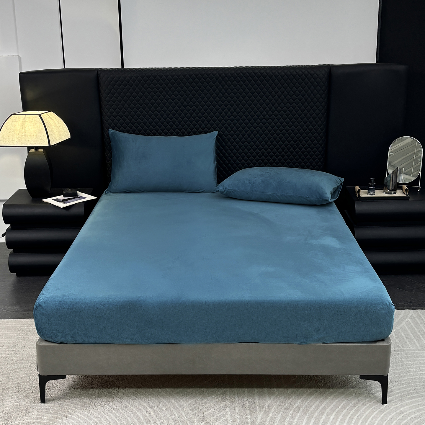 馨乐家纺 2025新款简约时尚纯色水晶绒床笠 浅蓝