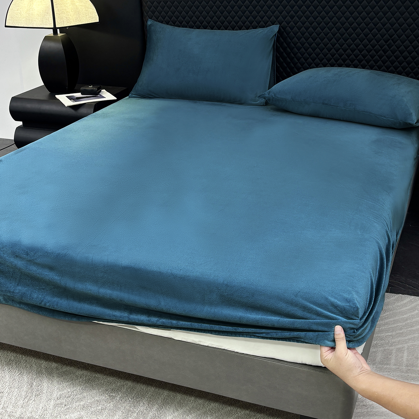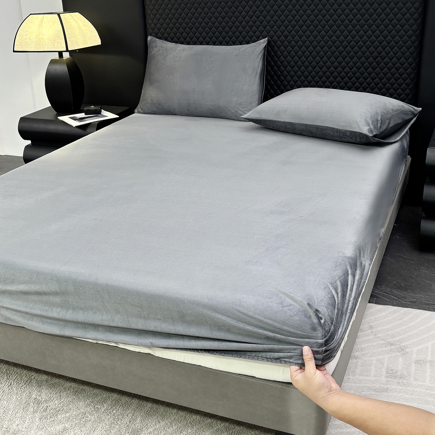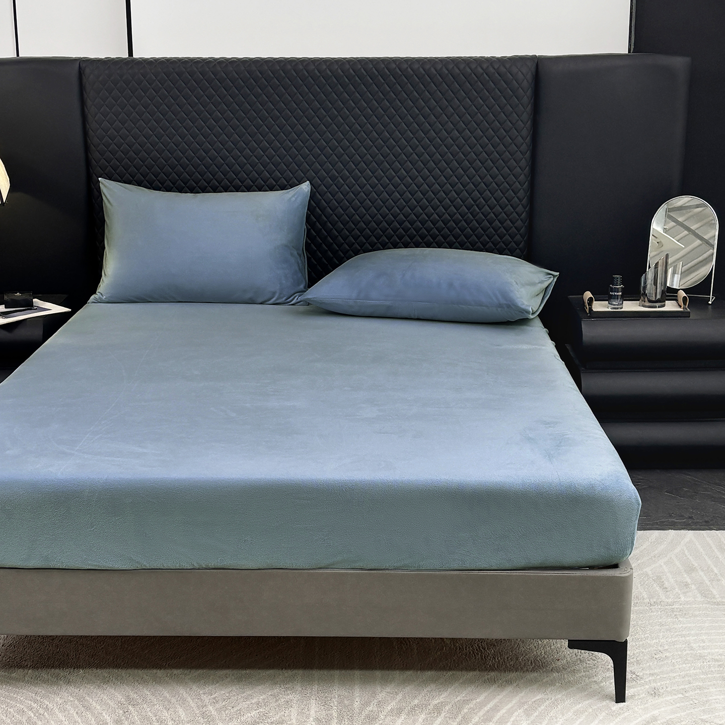 (总)馨乐家纺 2025新款简约时尚纯色水晶绒床笠,深灰,浅蓝,深蓝,豆沙,抹茶