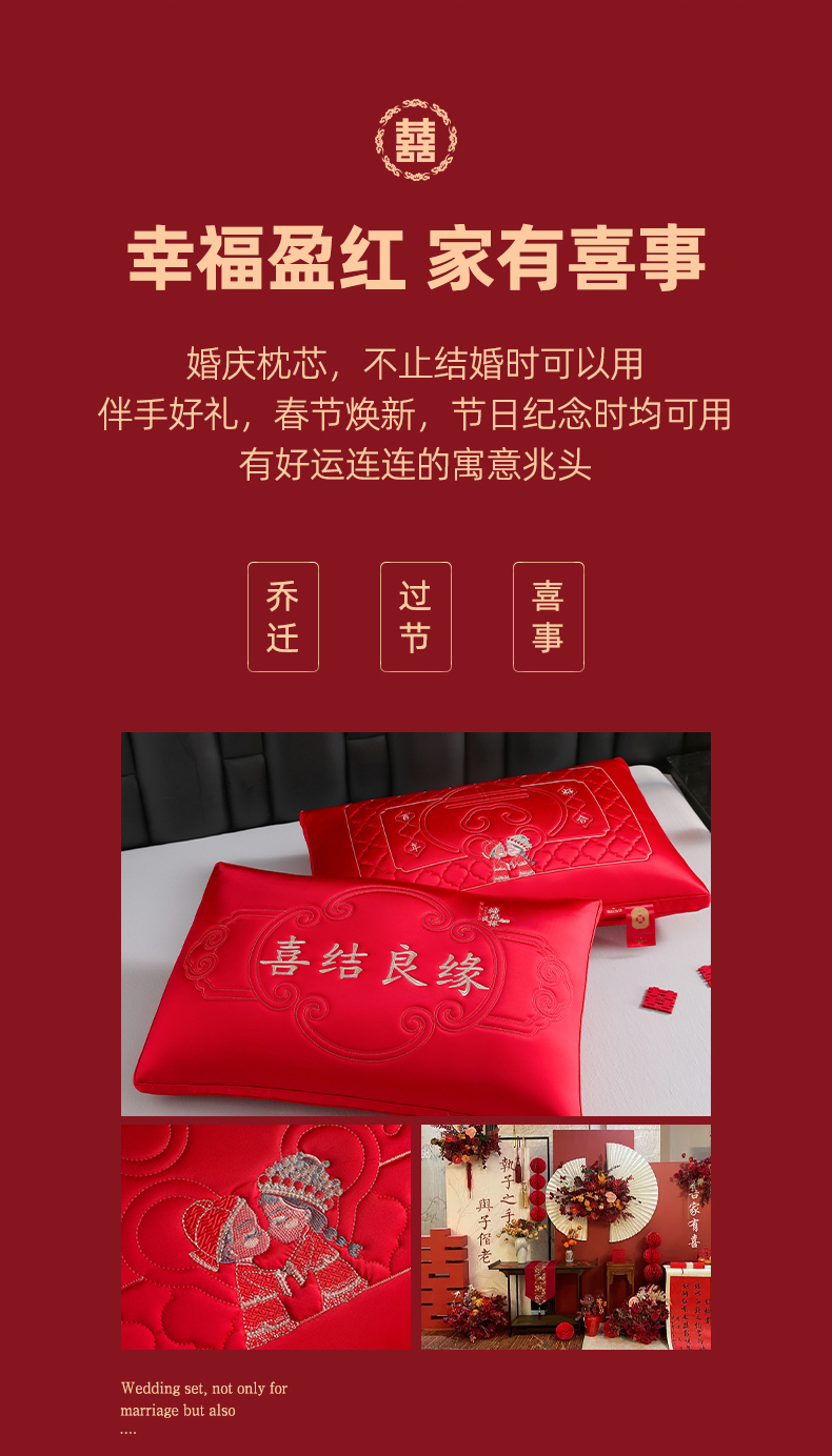 当前位置: 91家纺网 > 商品网购 > 枕头/枕芯/保健枕/颈椎枕 > 枕头枕芯 > 织布人 2025新款枕芯轻奢A类贡缎天丝刺绣婚庆枕头大红结婚专用枕芯 A类贡缎天丝枕-呈祥报喜
