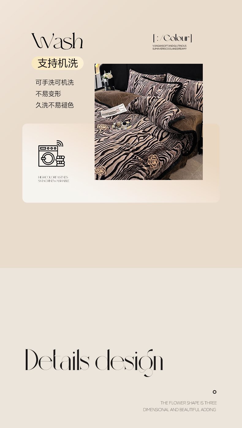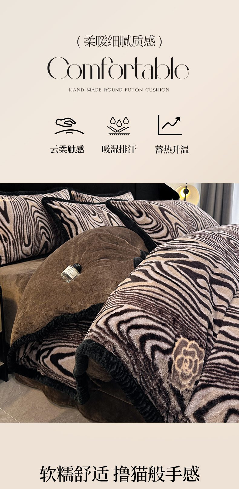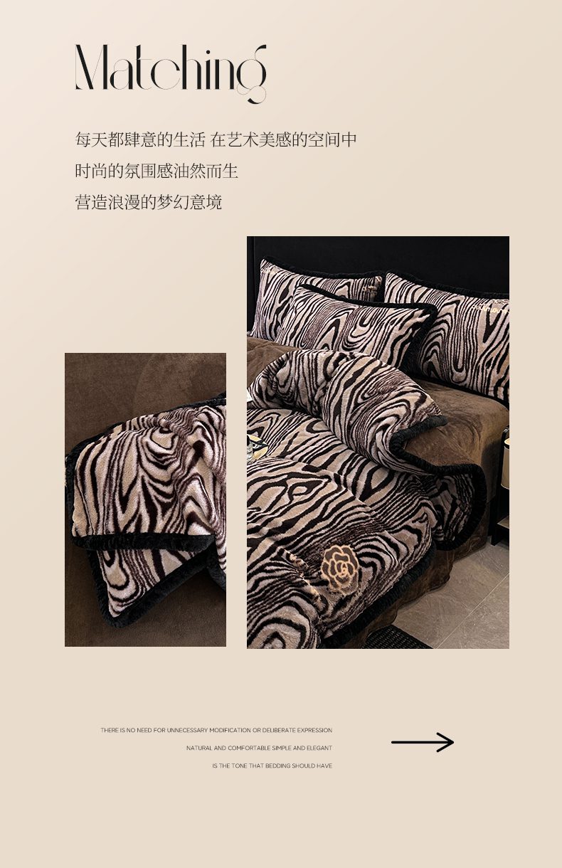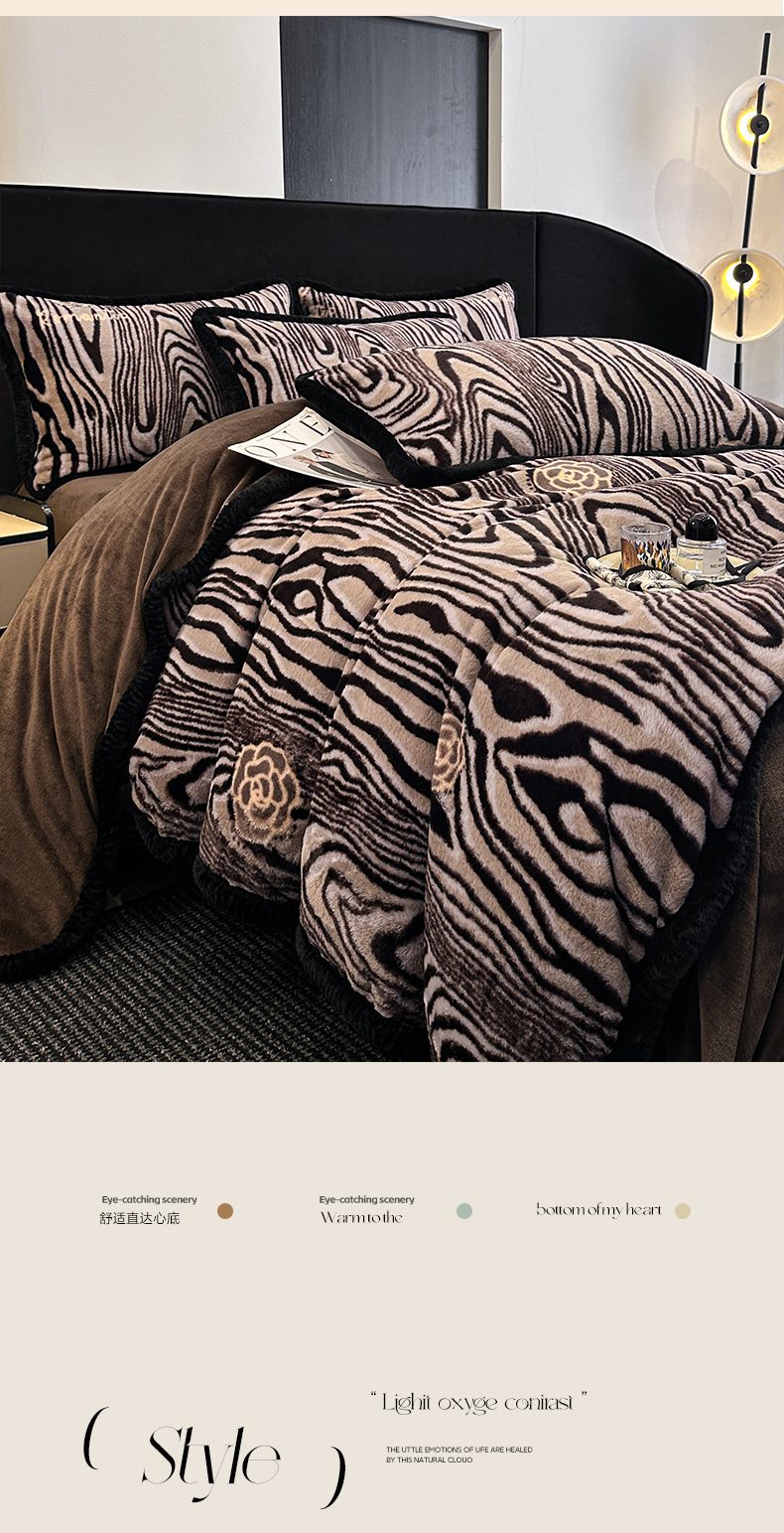 商品名称:畅畅家纺 2025新款高克重新款冬季加厚兔毛绒包边款床单床笠四件套 斑马纹-咖