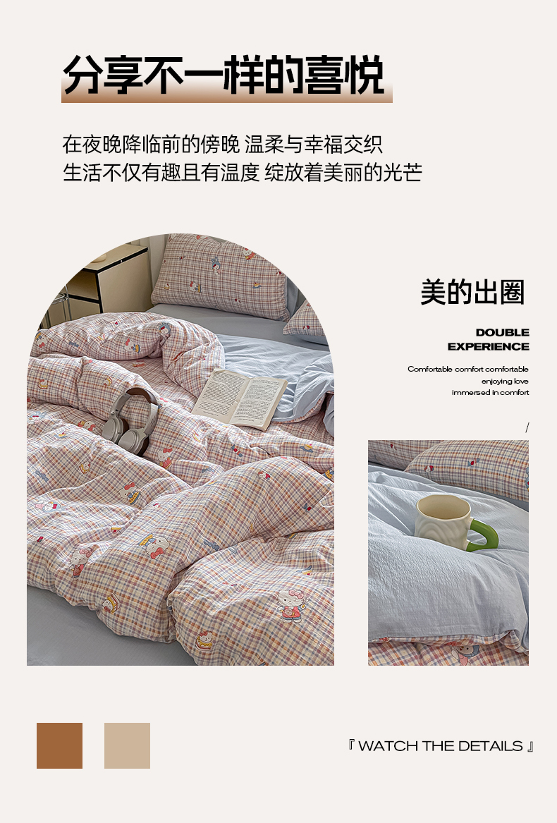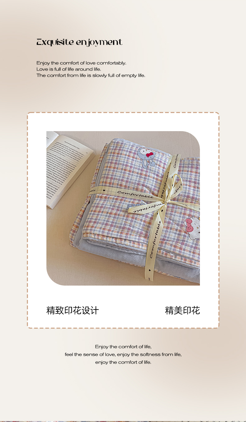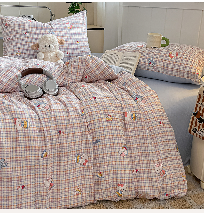 当前位置: 91家纺网 > 商品网购 > 床品套件 > 四件套 > 其它四件套 > 佳鸿家纺 2025新款卡通云感双层纱四件套碎花学生宿舍三件套床单款 彩格kt