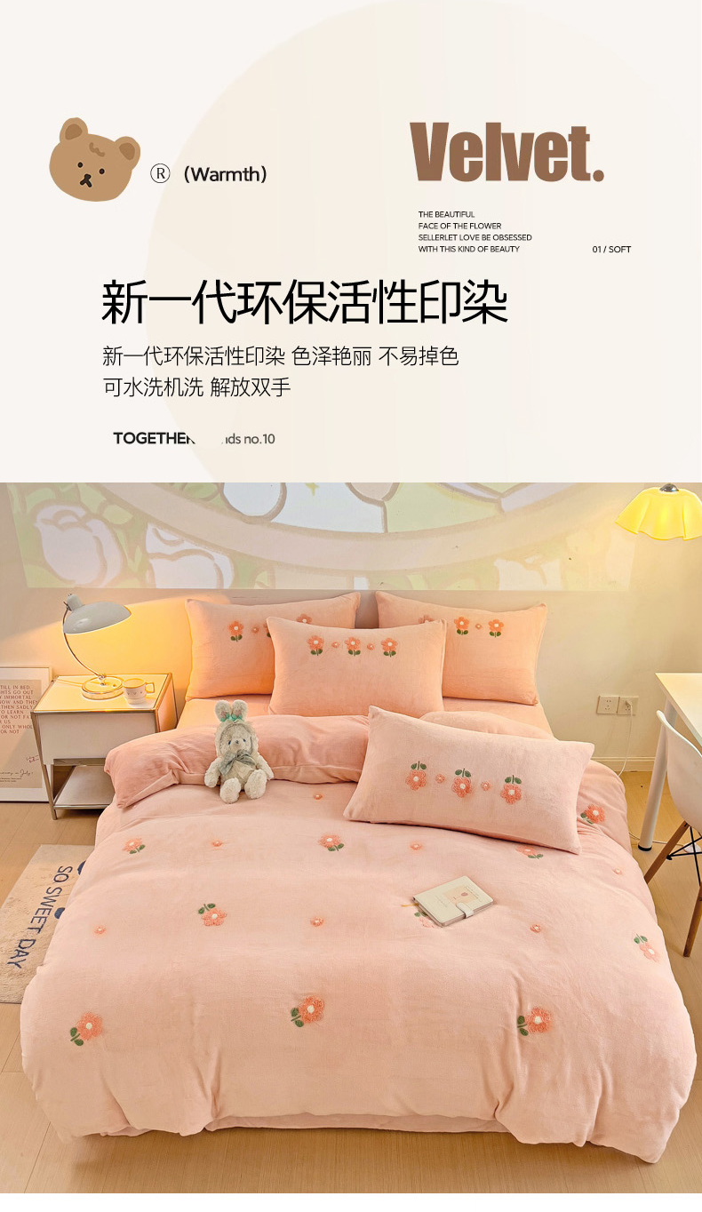 当前位置: 91家纺网 > 商品网购 > 床品套件 > 四件套 > 牛奶绒四件套 > 寐居家纺 2025新款纯色毛巾绣牛奶绒四件套 朵朵花开-粉玉