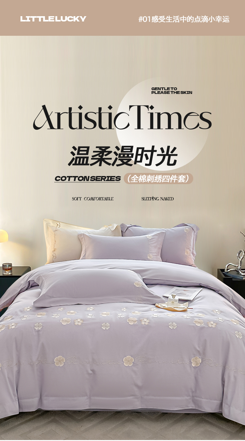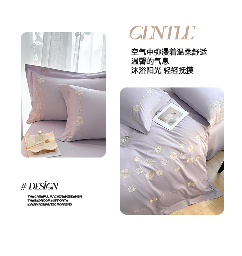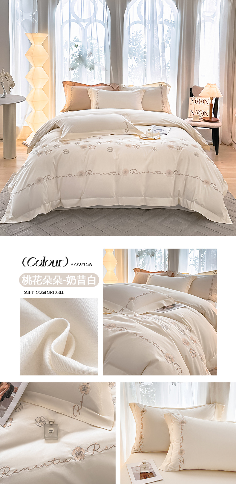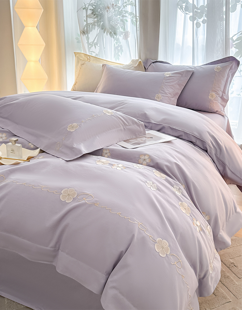 置顶家纺 2025新款全棉纯棉刺绣四件套桃花朵朵系列 桃花朵朵-香芋紫