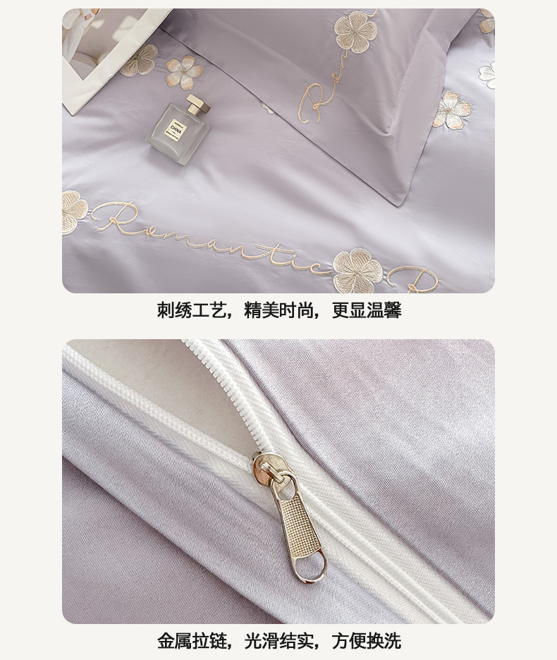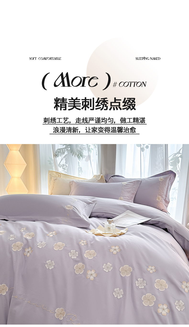 商品名称:置顶家纺 2025新款全棉纯棉刺绣四件套桃花朵朵系列 桃花朵朵-香芋紫