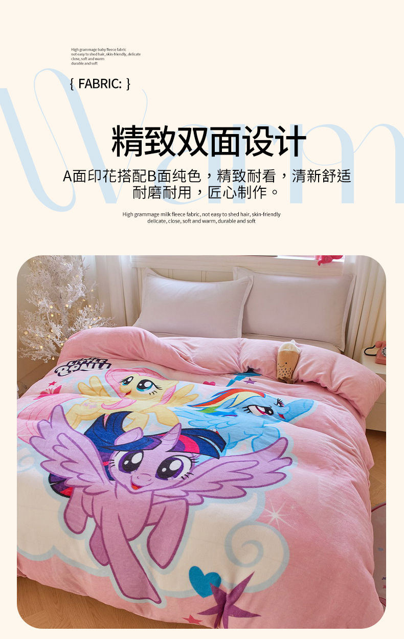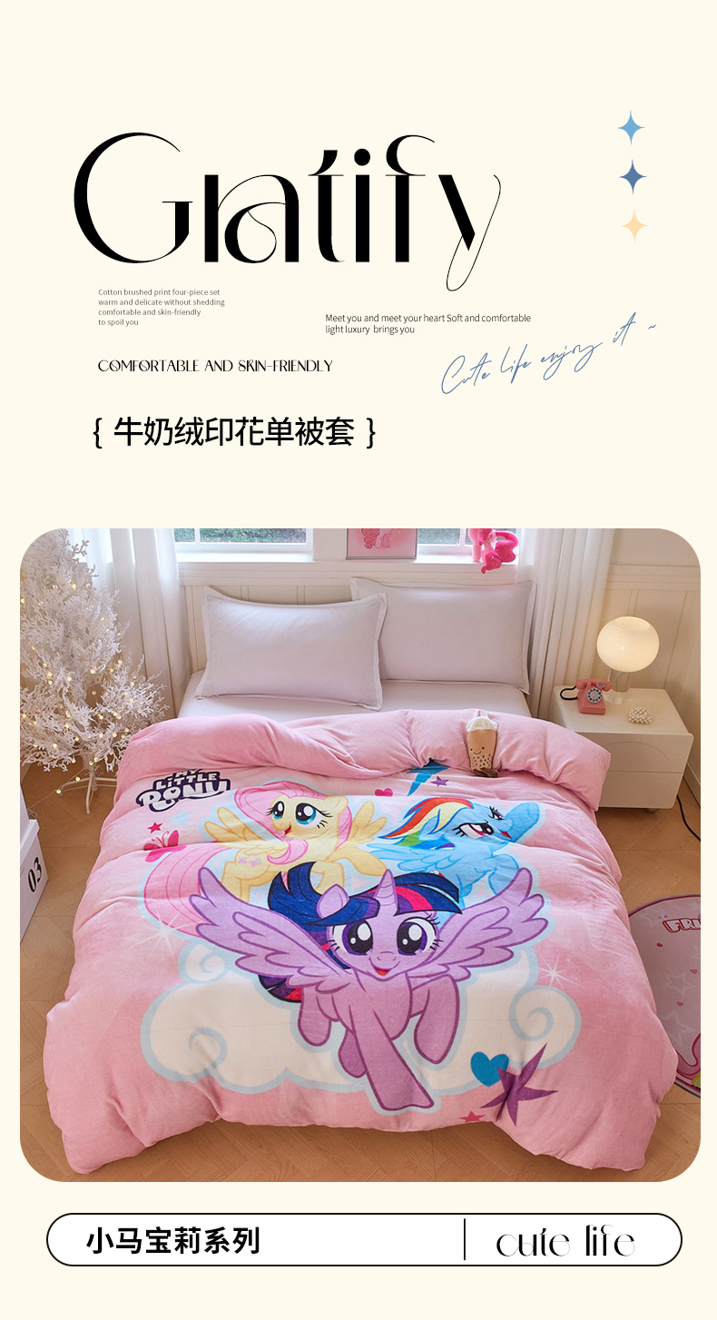 商品名称:蘭菲家纺 2025新款小马宝莉牛奶绒单被套 被套单件 飞翔-宝莉