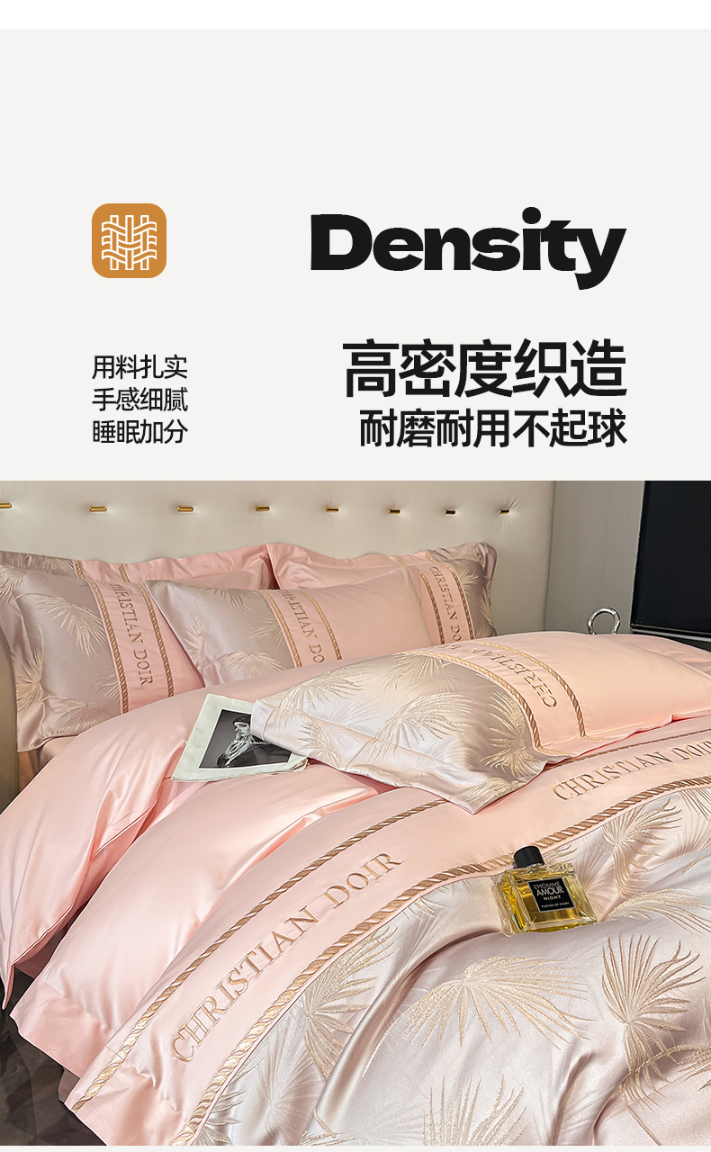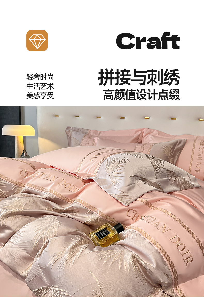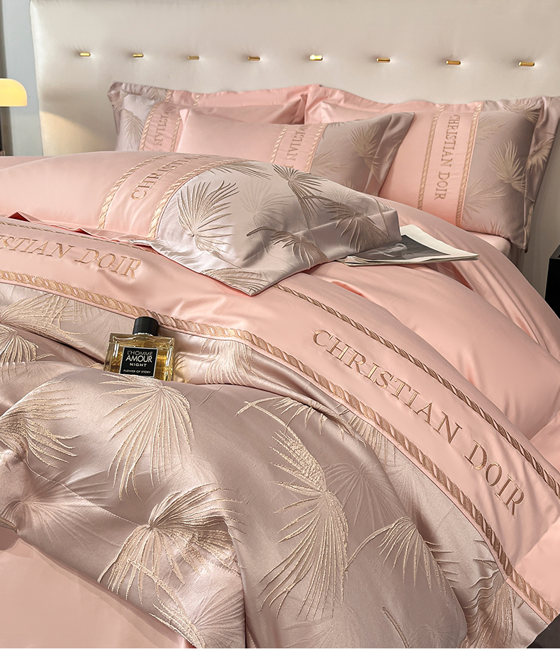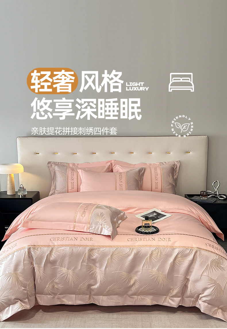 当前位置: 91家纺网 > 商品网购 > 床品套件 > 四件套 > 提花四件套 > 置顶家纺 2025新款亲肤提花拼接刺绣四件套系列 颜予-玉粉