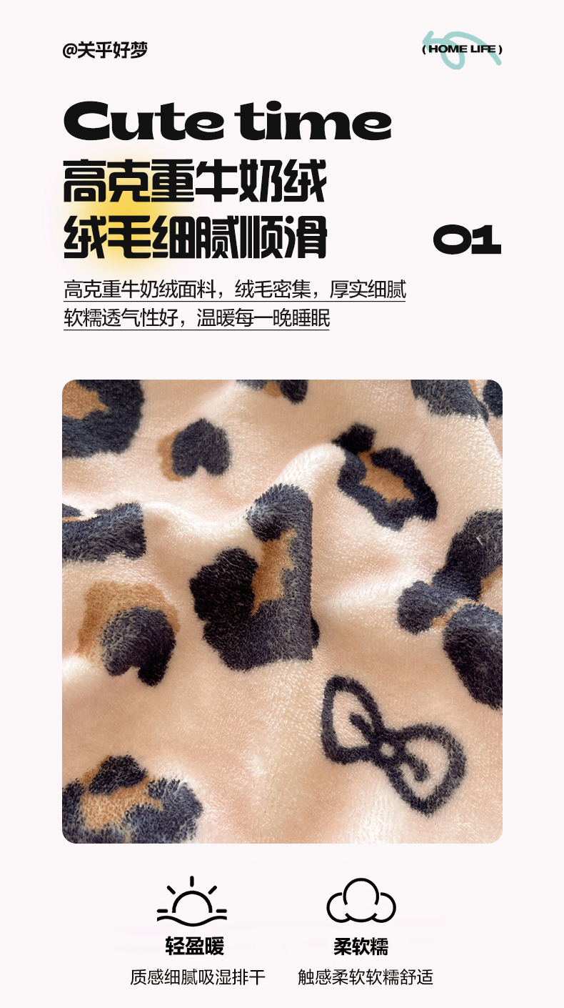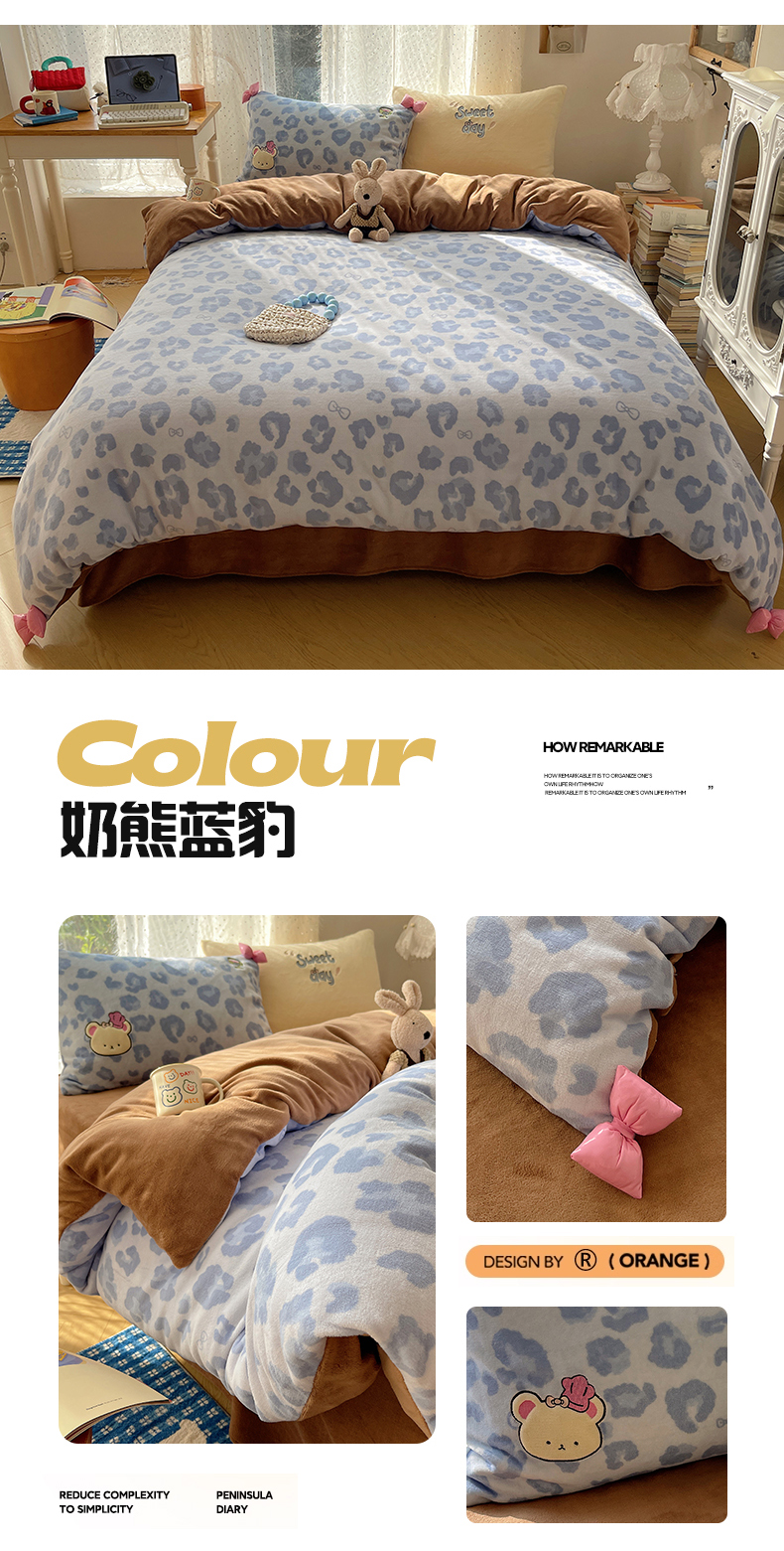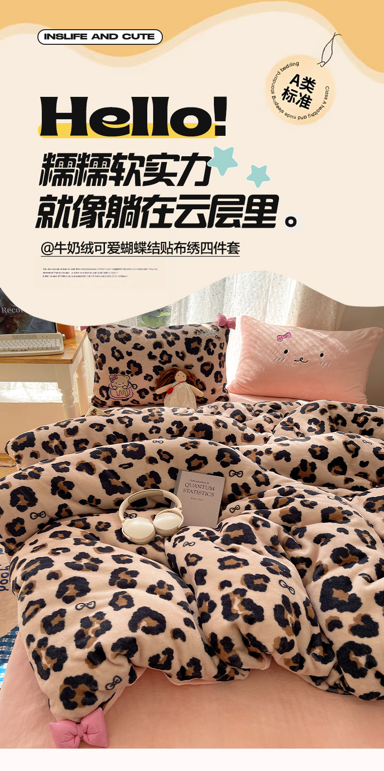 (总)轻奢坊 2025新款牛奶绒可爱猫咪豹纹贴布绣四件套,咖豹心心猫,粉豹呆萌猫,蓝豹黑皮猫