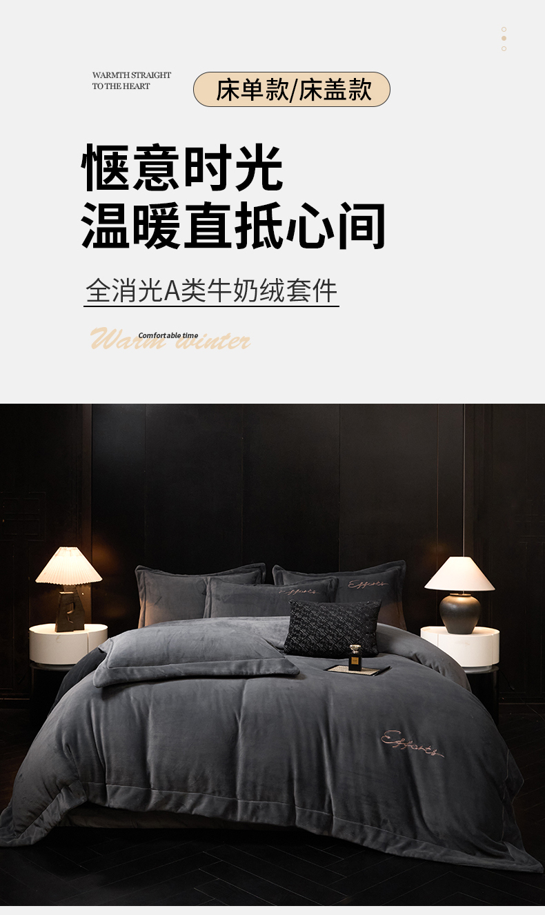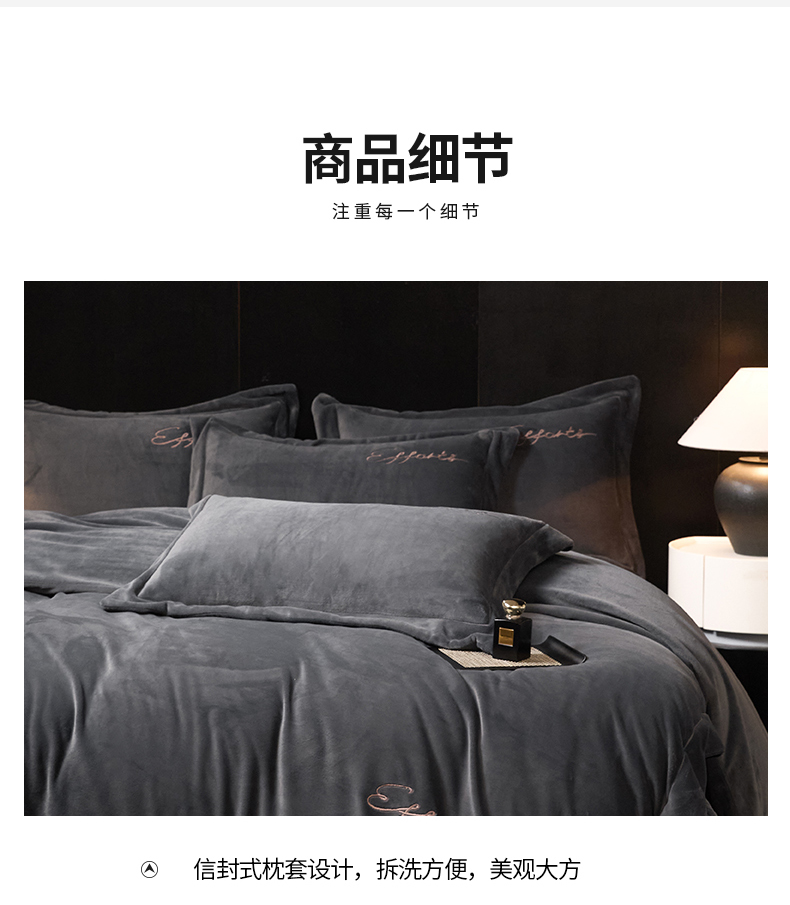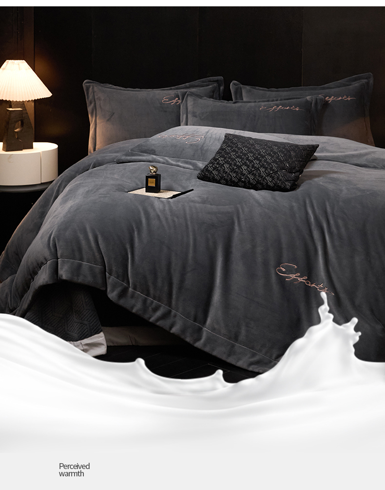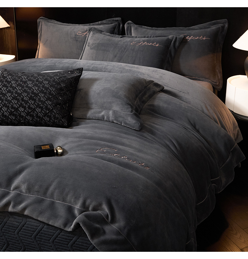 当前位置: 91家纺网 > 商品网购 > 床品套件 > 四件套 > 牛奶绒四件套 > 新方向 2025新款全消光A类刺绣牛奶绒四件套-赫本 赫本-爵士灰
