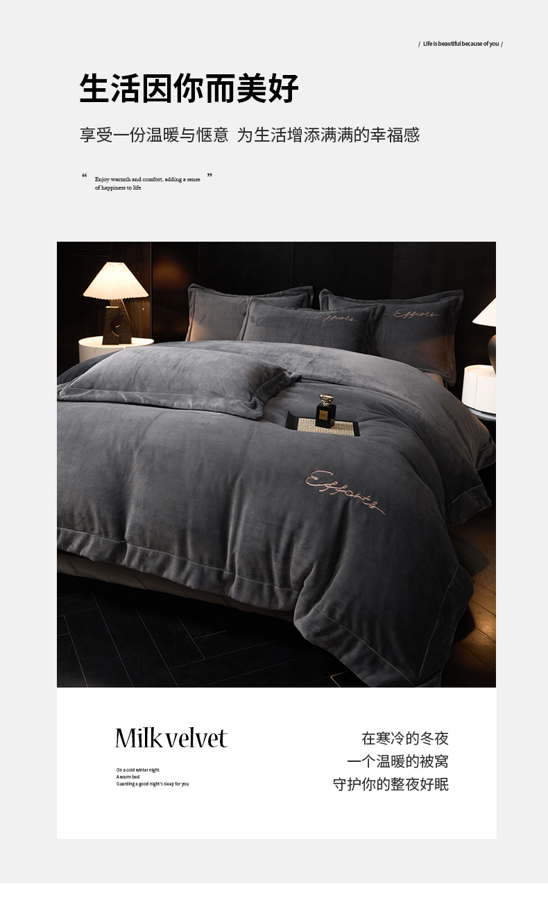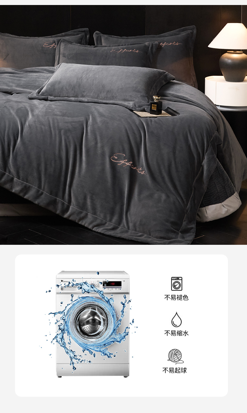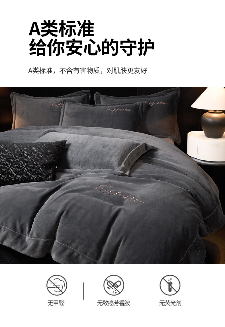 当前位置: 91家纺网 > 商品网购 > 床品套件 > 四件套 > 牛奶绒四件套 > 新方向 2025新款全消光A类刺绣牛奶绒四件套-赫本 赫本-爵士灰