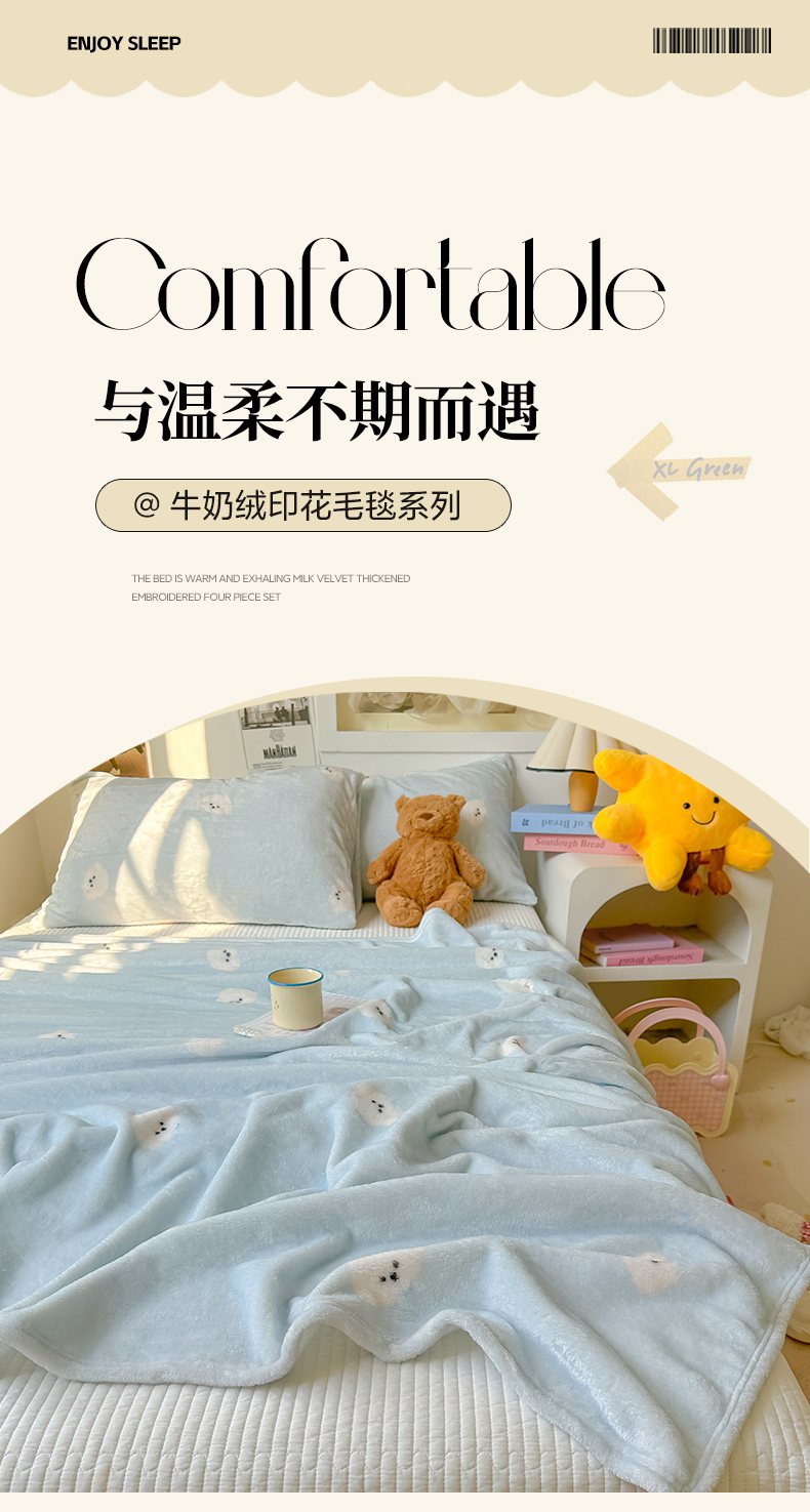 韩巢家纺 2025新款高克重印花牛奶绒床品四件套 田园小花,田园小花