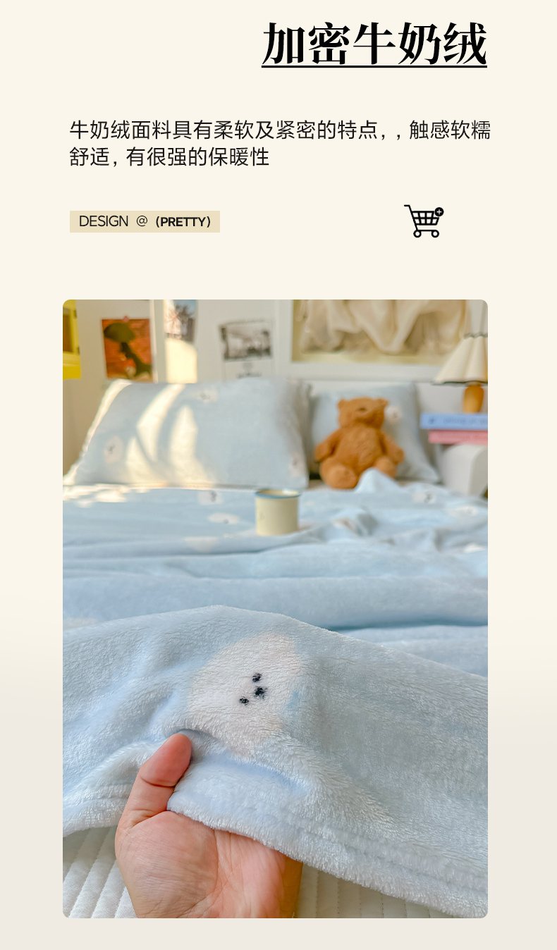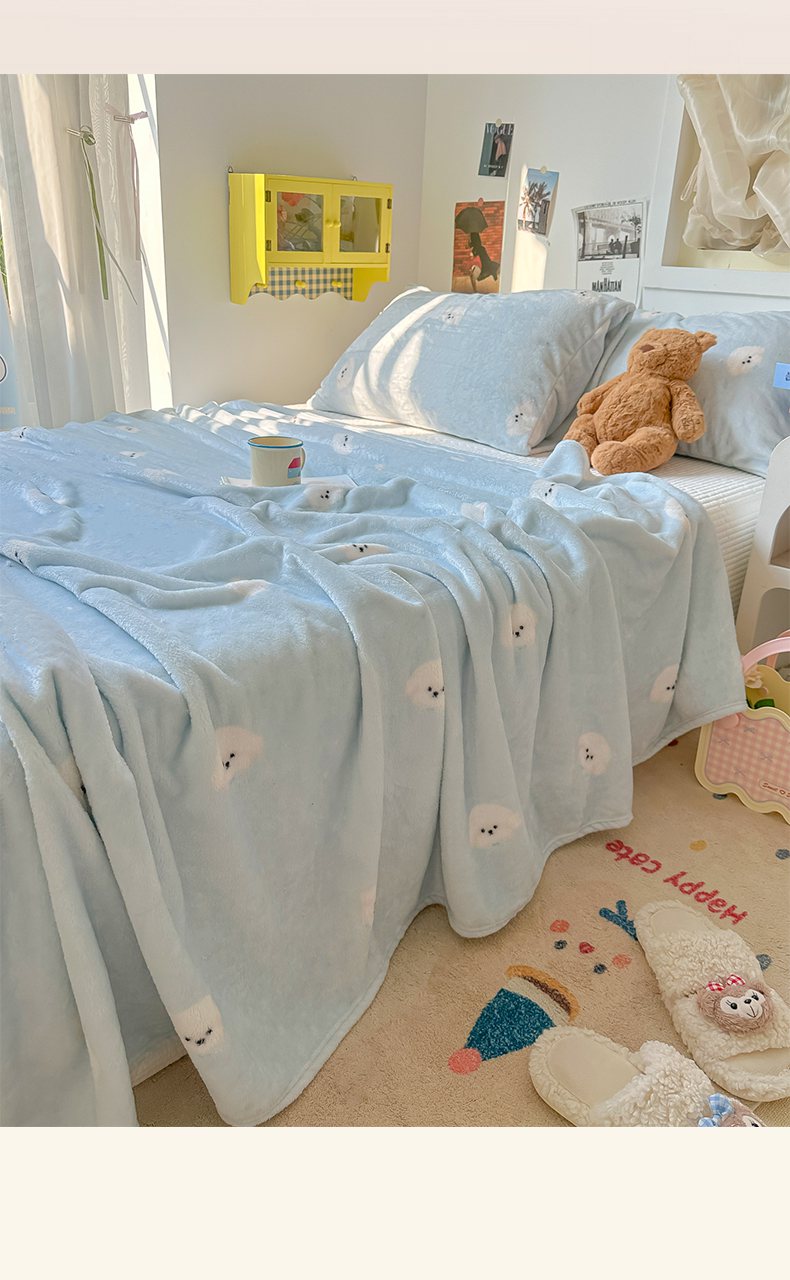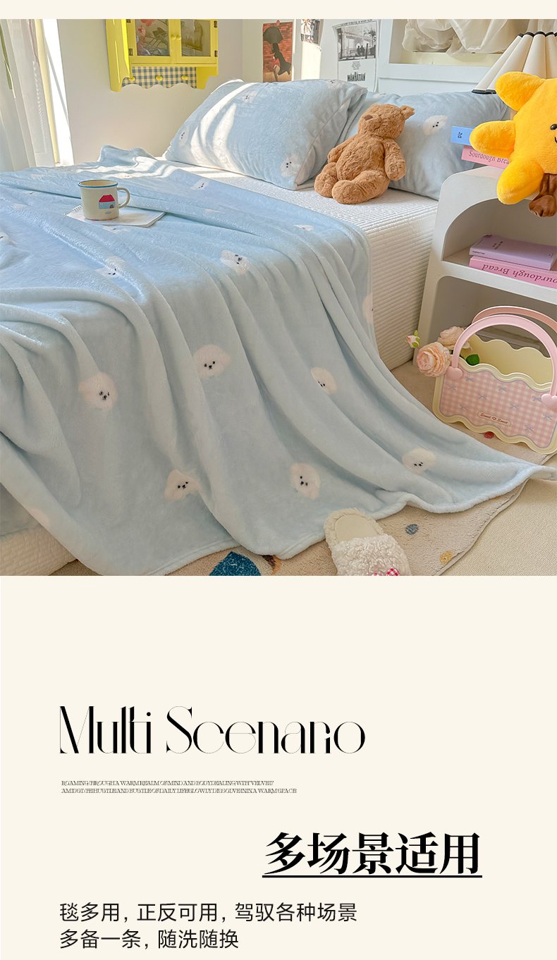 商品名称:韩巢家纺 2025新款四季可用牛奶绒多功能毛毯 可爱狗头-蓝