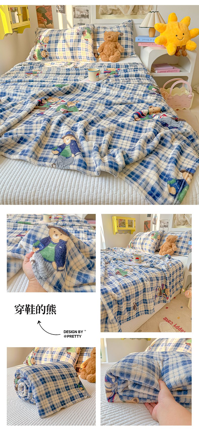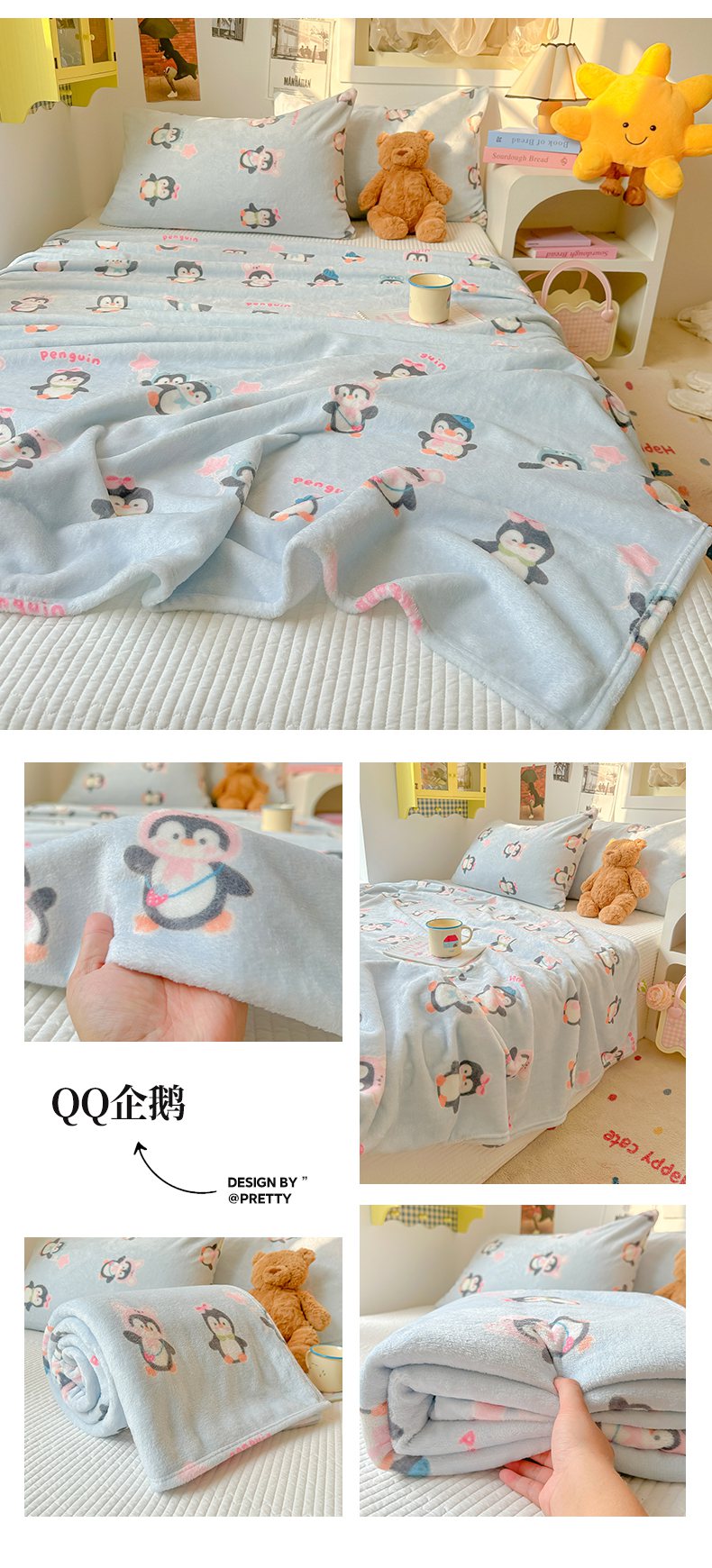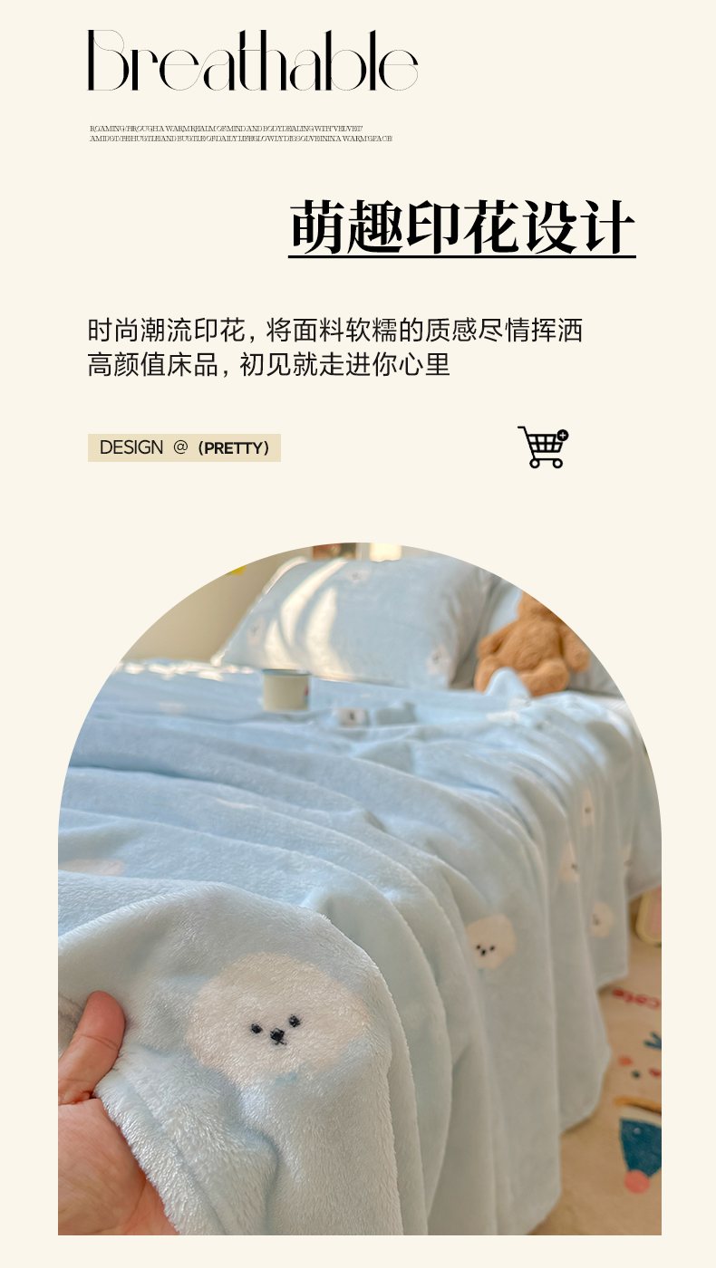 商品名称:韩巢家纺 2025新款四季可用牛奶绒多功能毛毯 可爱狗头-蓝