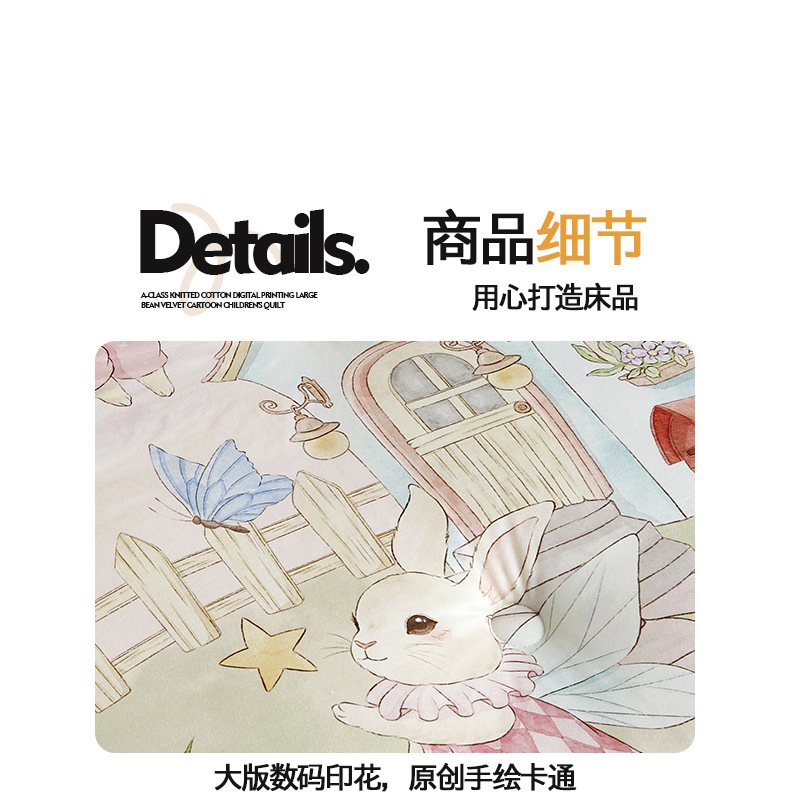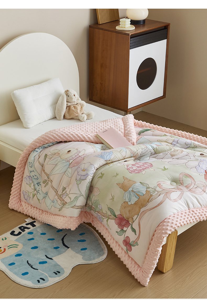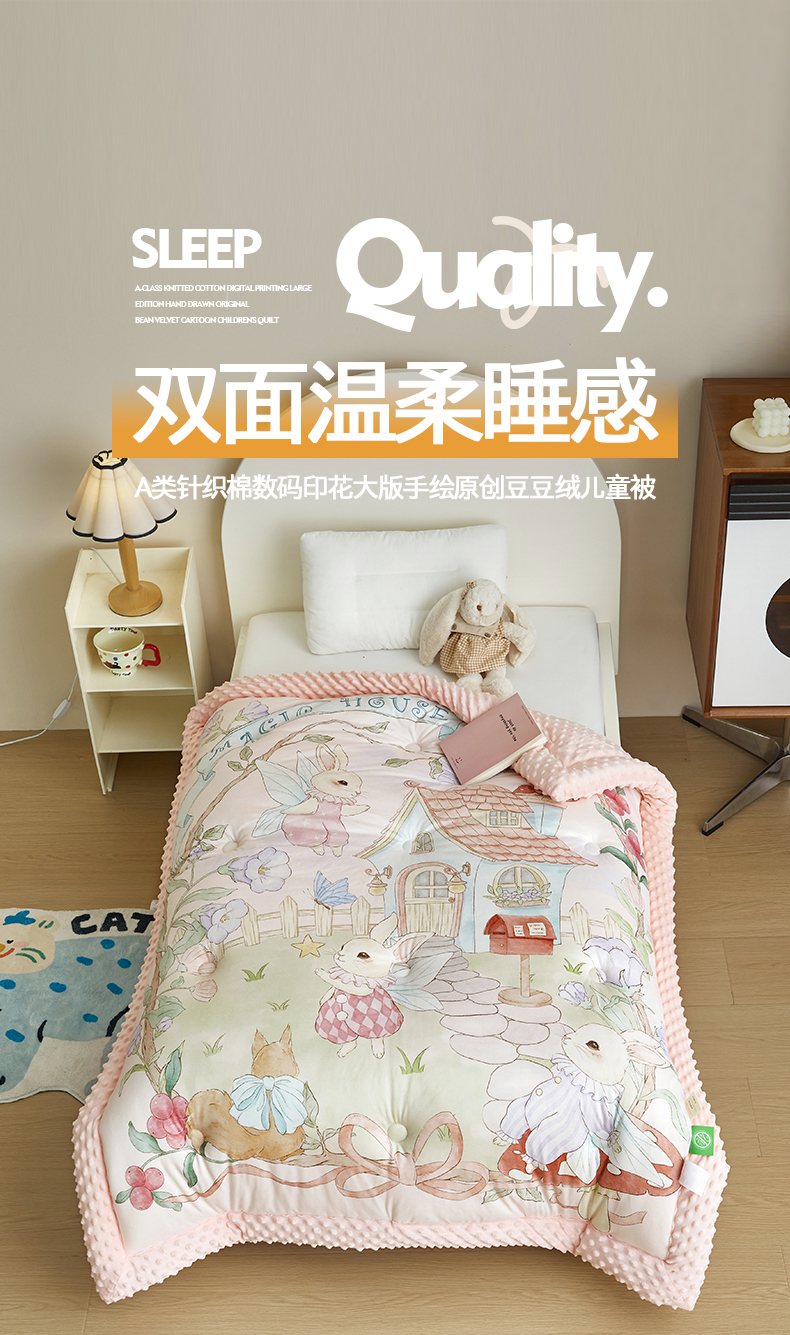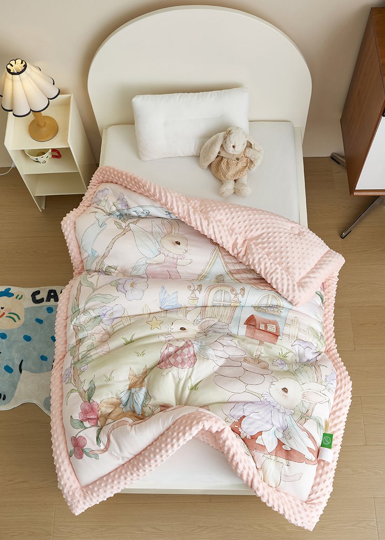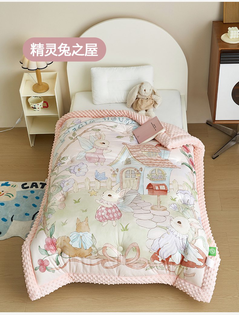 商品名称:荷马之梦 2025新款针织棉数码印花大版手绘原创豆豆绒被芯儿童被子春秋被冬被-梦境系列 梦境-精灵兔之屋