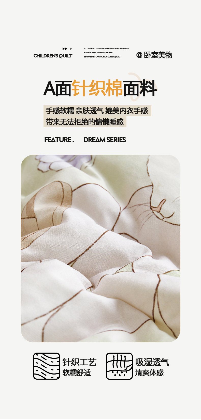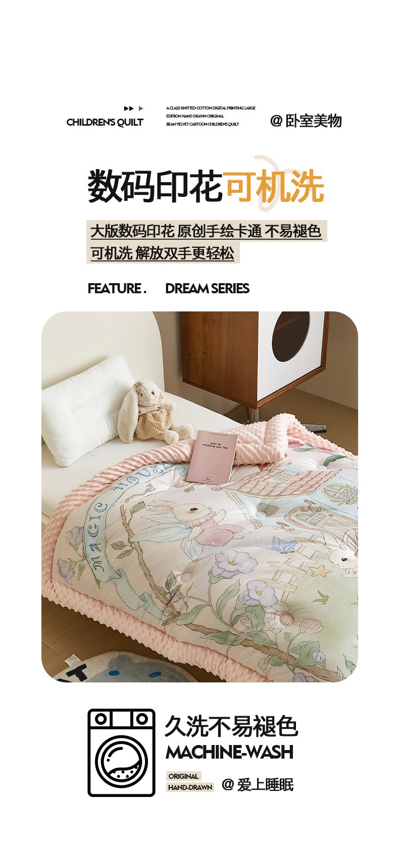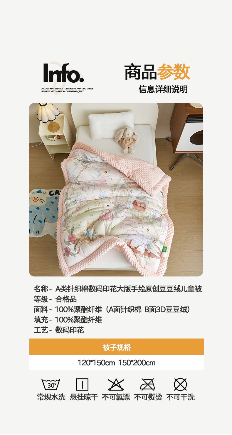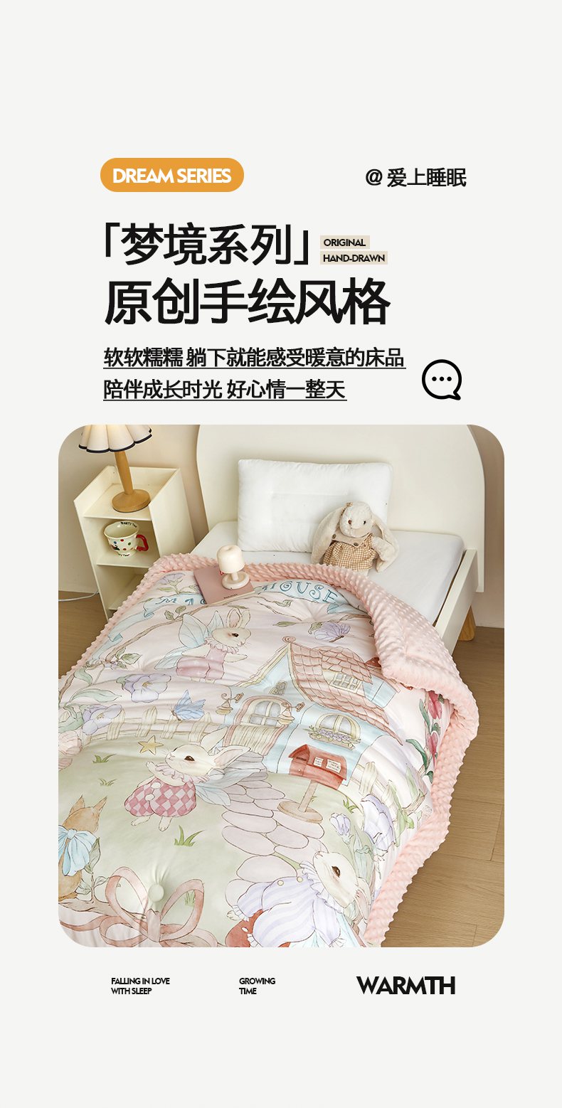 商品名称:荷马之梦 2025新款针织棉数码印花大版手绘原创豆豆绒被芯儿童被子春秋被冬被-梦境系列 梦境-精灵兔之屋