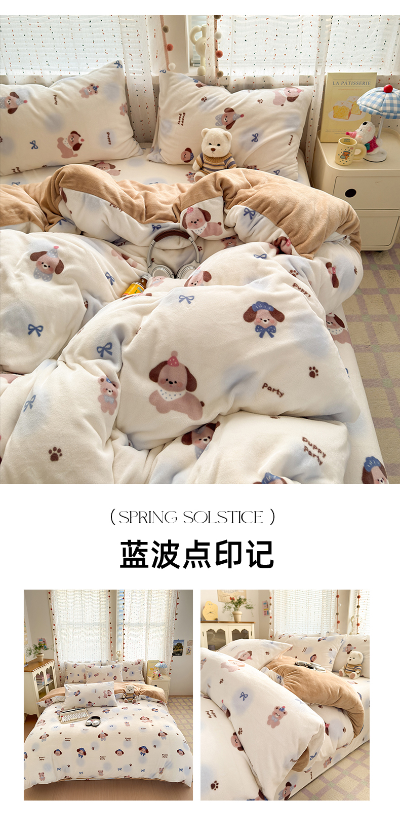 • 91家纺网 家纺一手货源 找家纺 沐芷 2025加厚A类牛奶绒被套被罩高克重加厚珊瑚绒四件套卡通简约加绒单被套 【绒】爱情蓝波点