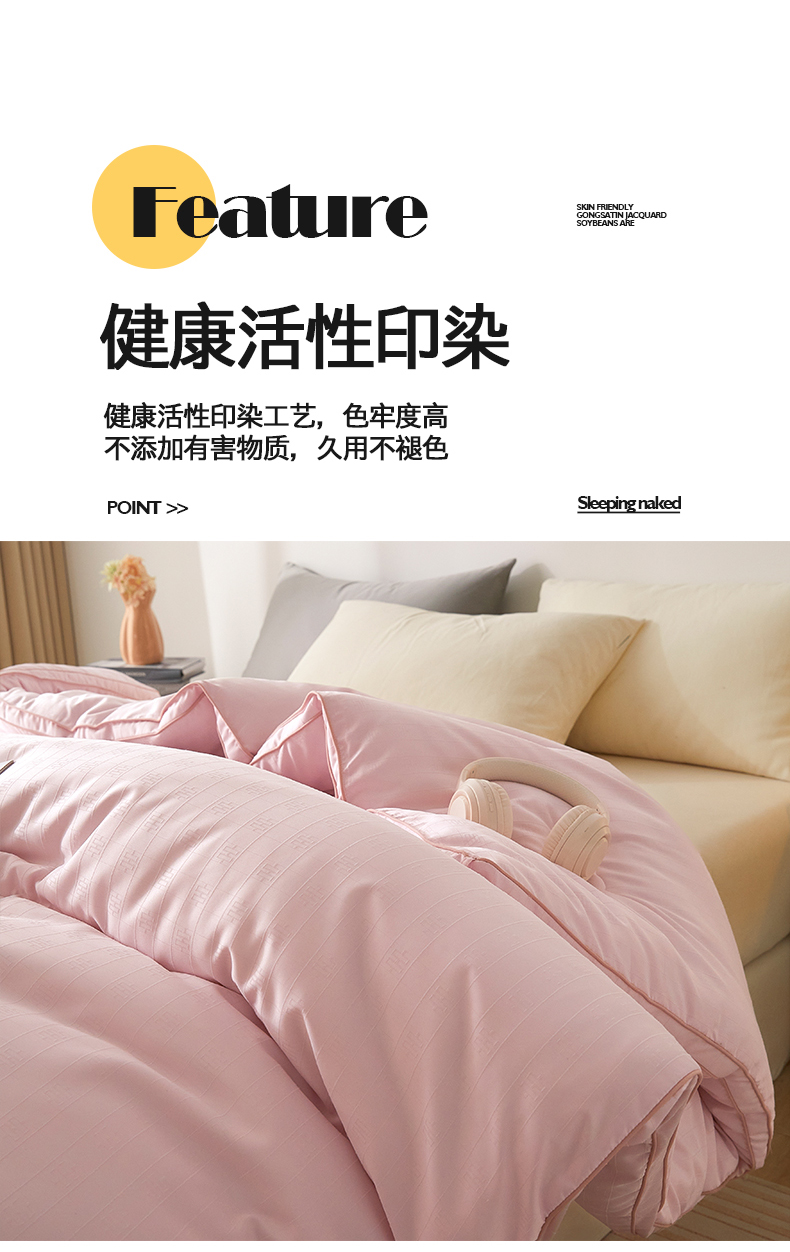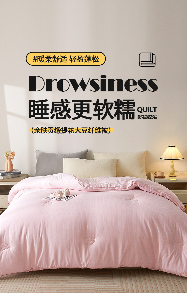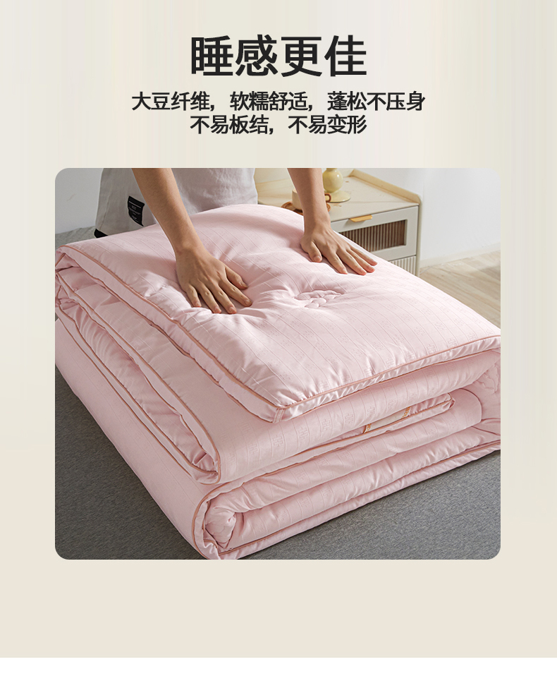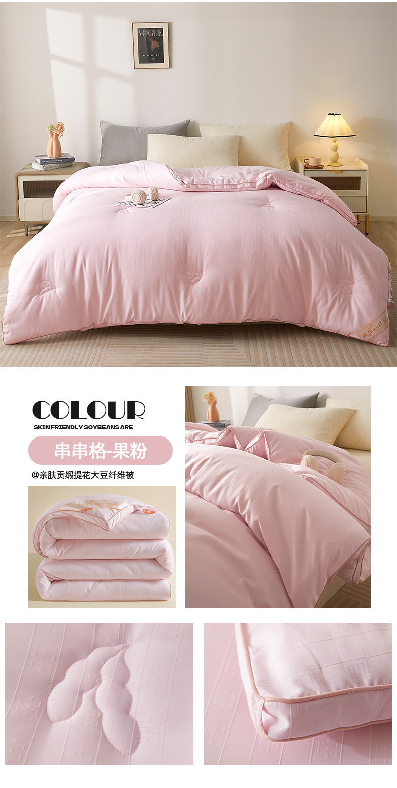 置顶家纺 2024新款贡缎提花大豆纤维被子被芯--棚拍图 串串格-果粉