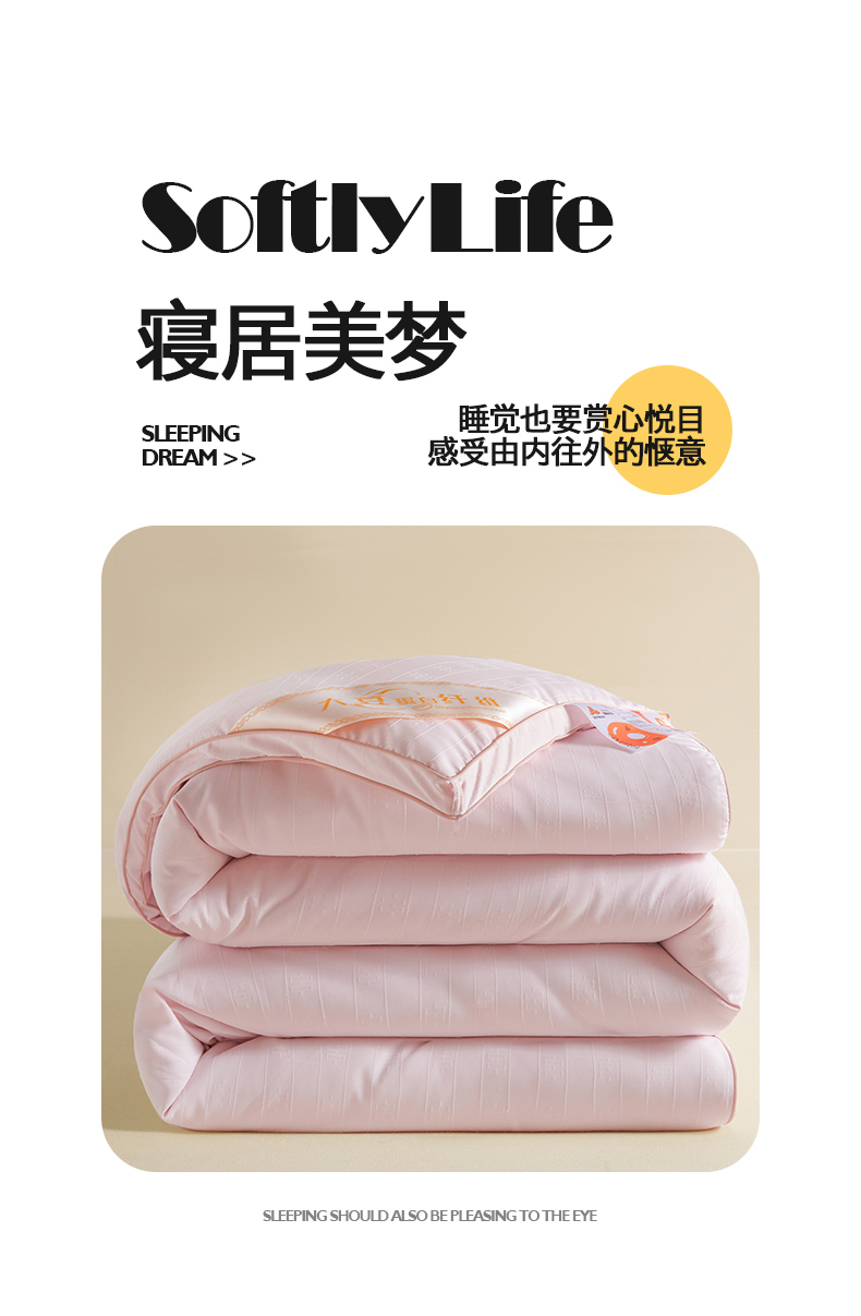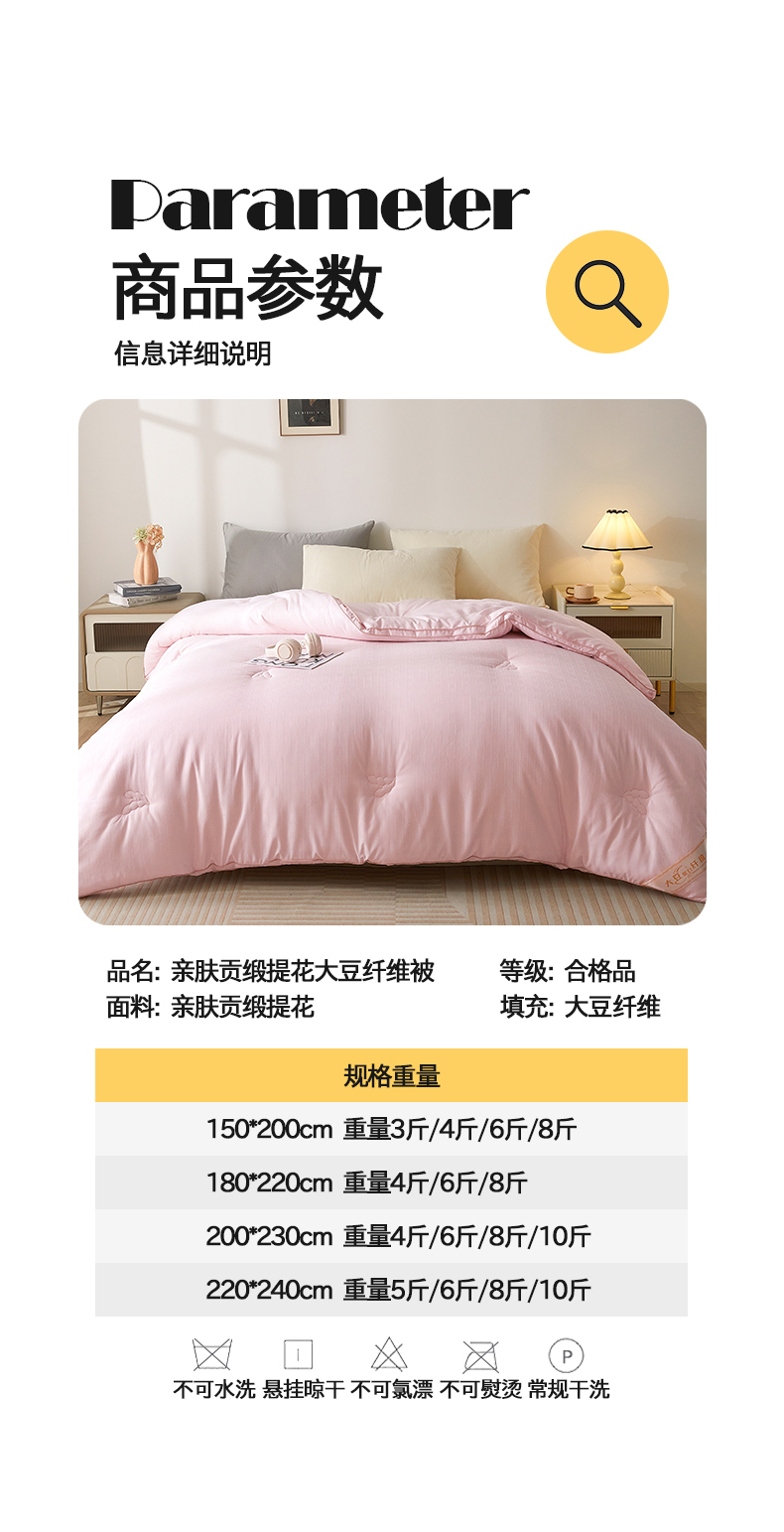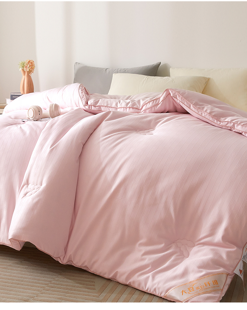 • 91家纺网 家纺一手货源 找家纺 置顶家纺 2024新款贡缎提花大豆纤维被子被芯--棚拍图 串串格-果粉
