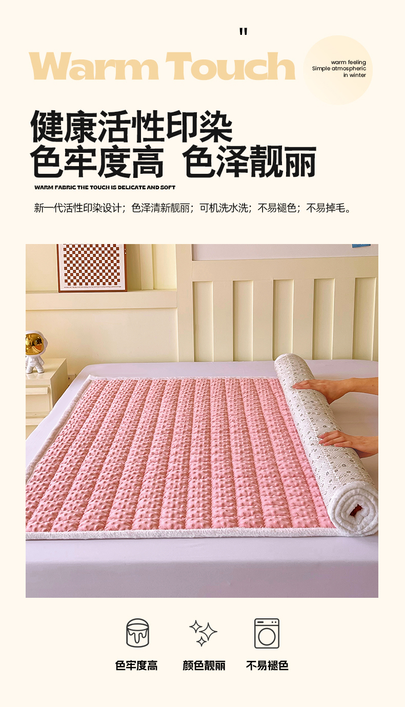 当前位置: 91家纺网 > 商品网购 > 床垫/床褥 > 普通床垫 > 金鑫汇家纺 2025秋冬纯色豆豆绒床褥垫系列-加大床 加大床豆豆绒床褥垫粉色