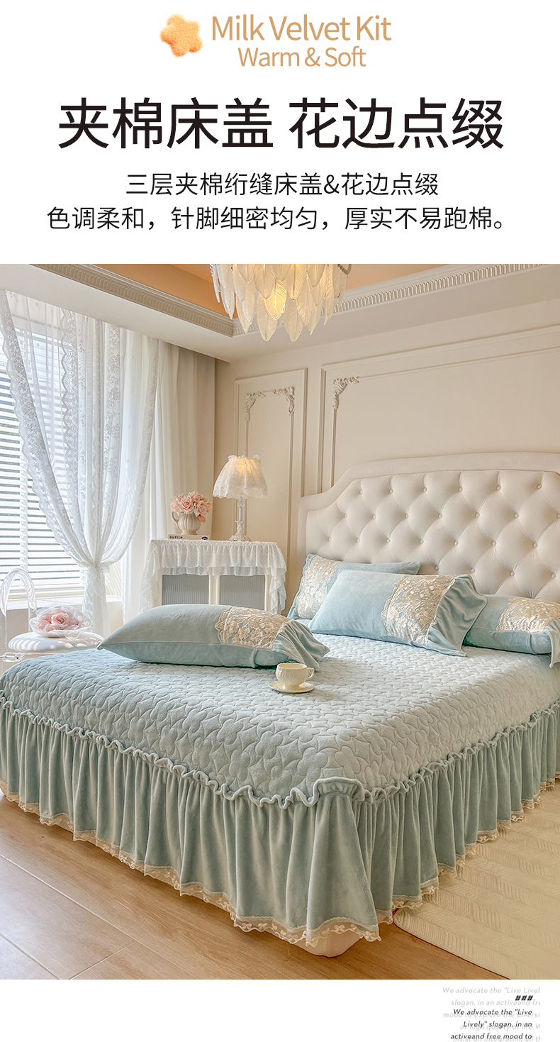 (总)网红馆(ck家纺) 2025新款色织提花牛奶绒床裙四件套-洛丽塔系列,洛丽塔-豆沙,洛丽塔-蓝色,洛丽塔-米色