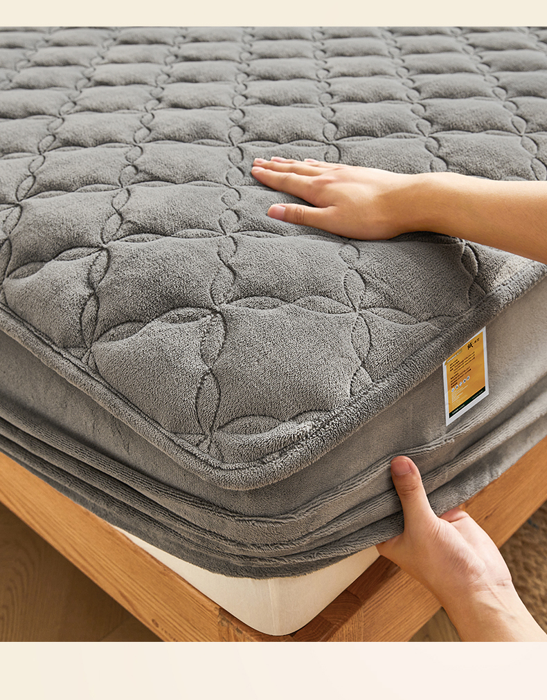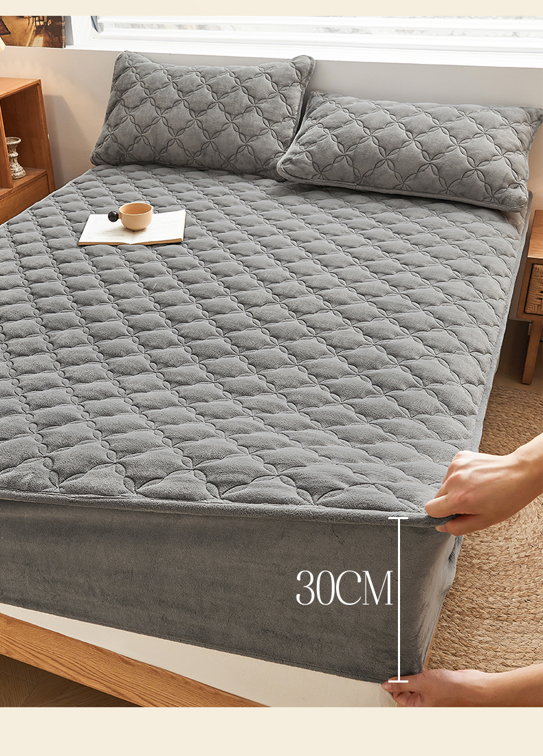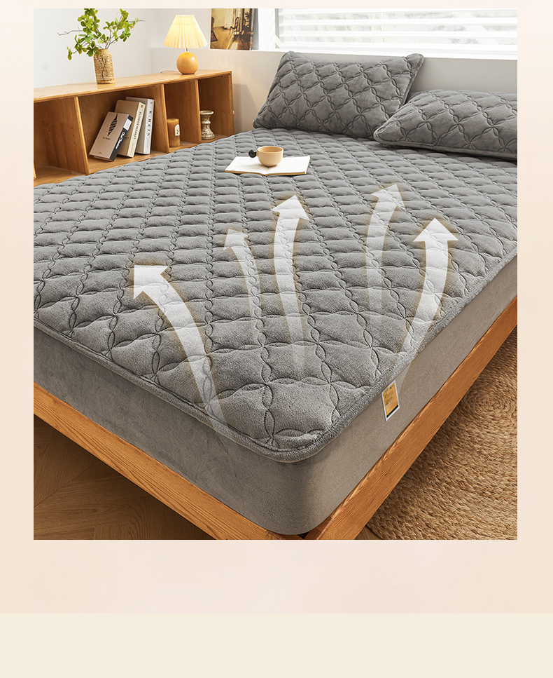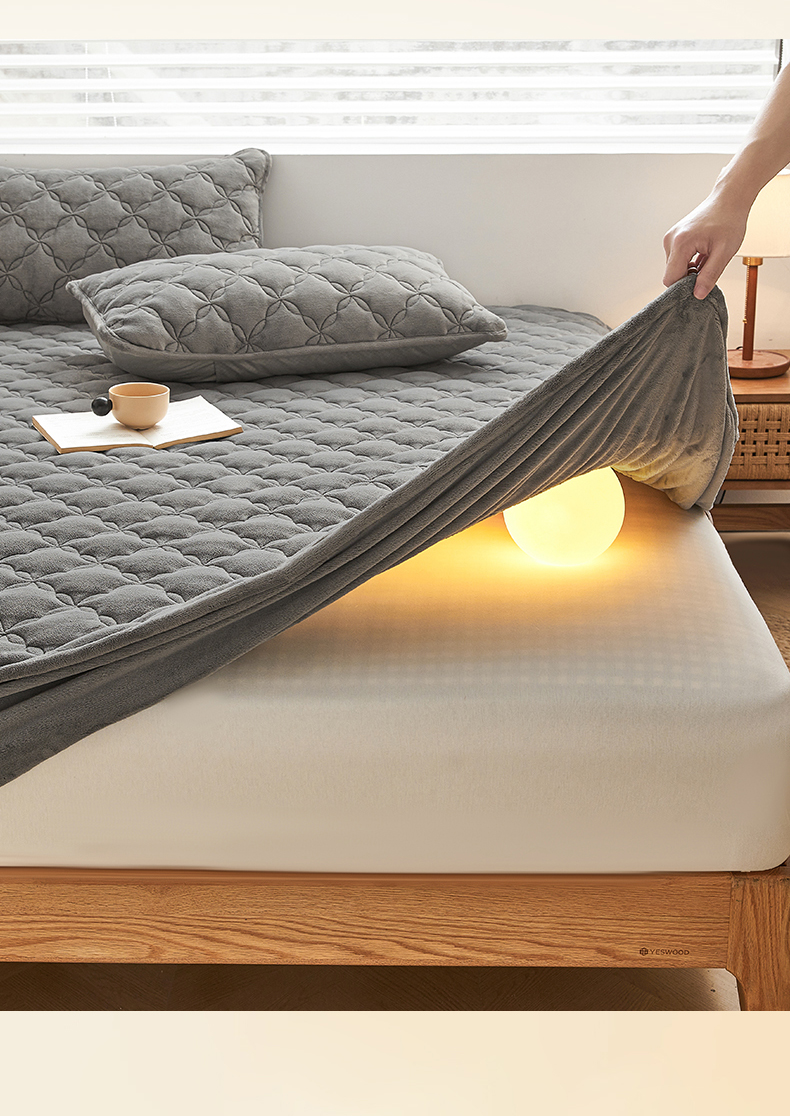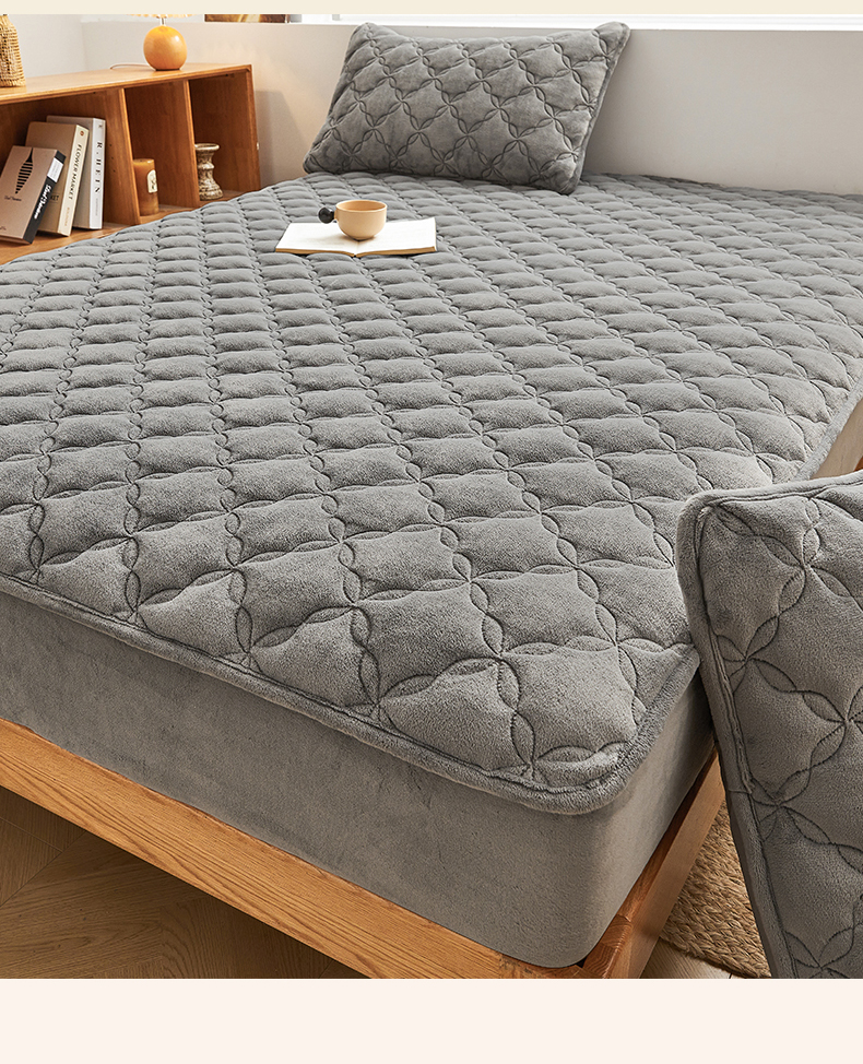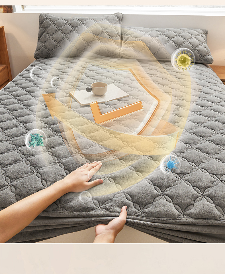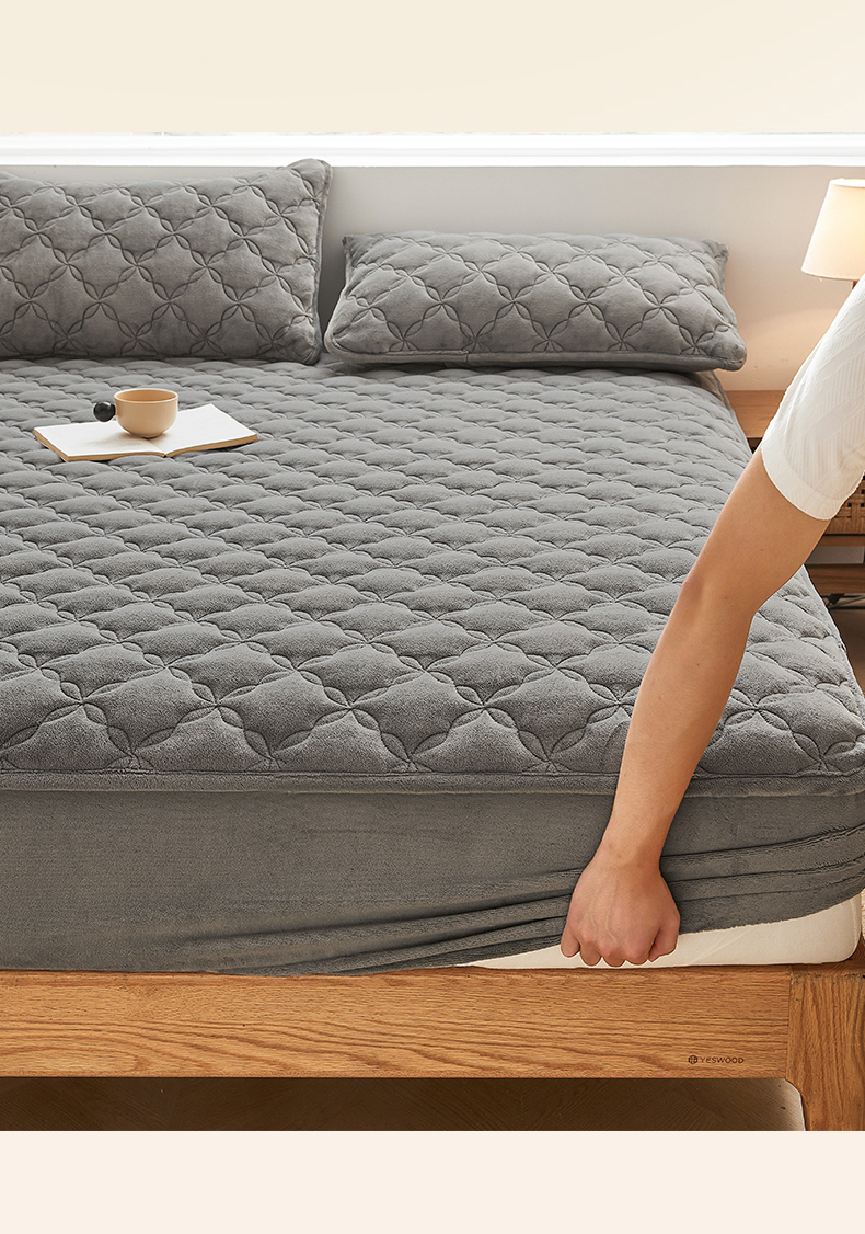 布卢姆床垫 2025新款A类抗菌牛奶绒床笠 菱格-典雅灰