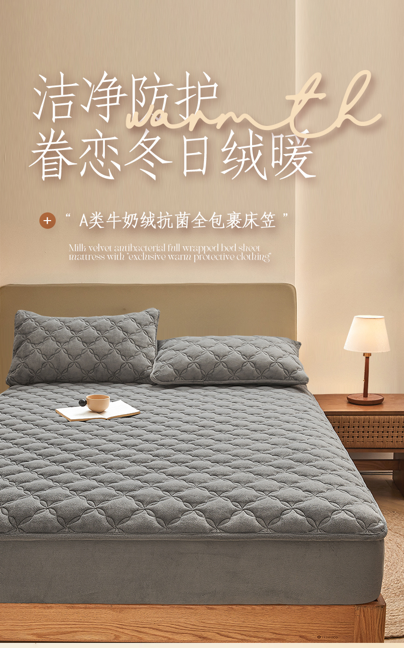 商品名称:布卢姆床垫 2025新款A类抗菌牛奶绒床笠 菱格-典雅灰