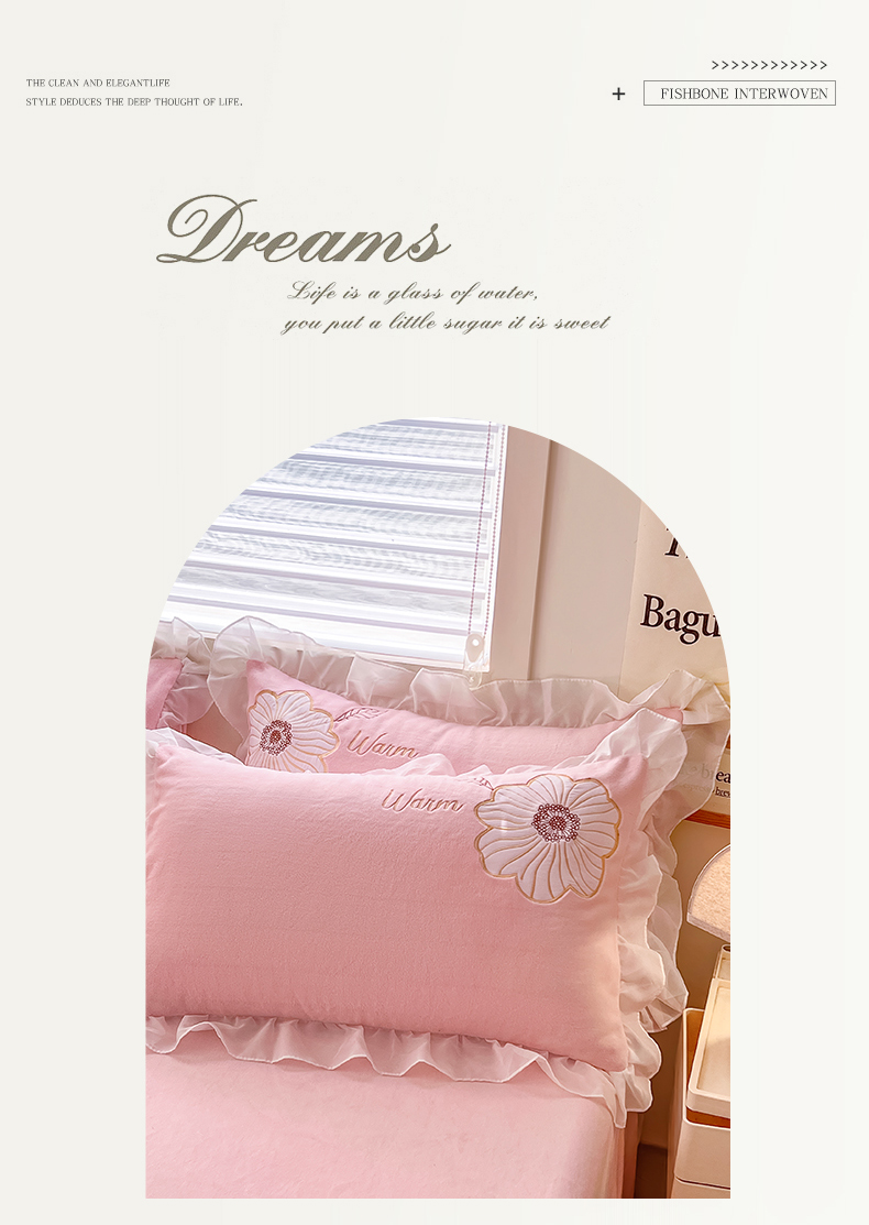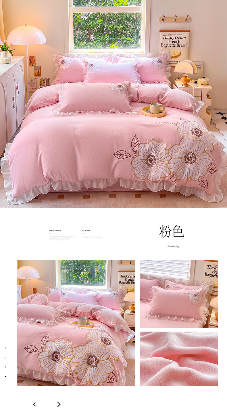 当前位置: 91家纺网 > 商品网购 > 床品套件 > 四件套 > 牛奶绒四件套 > 木子家纺 2025新款半亩花田牛奶绒四件套 茶花粉