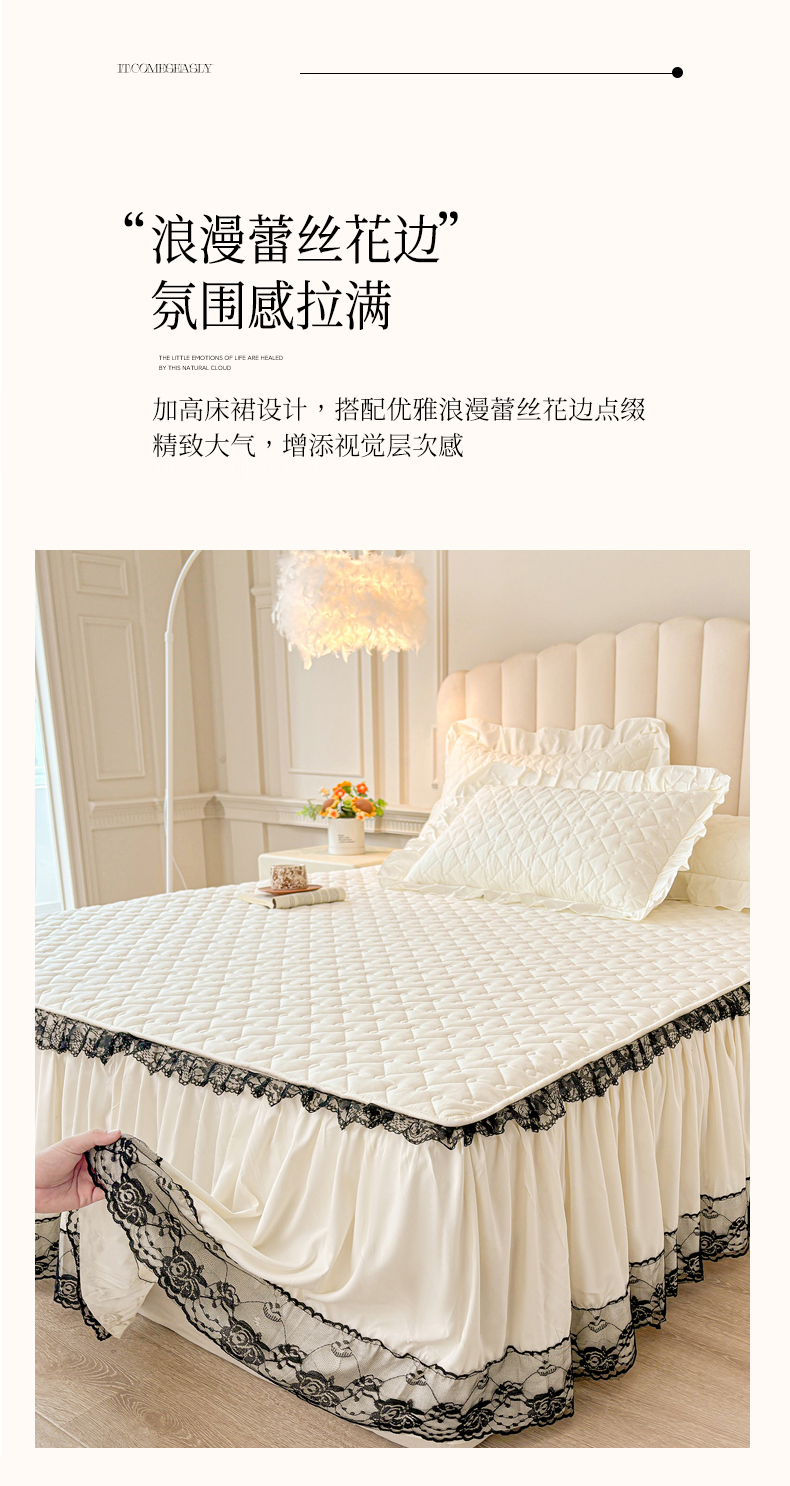 (总)笠裙家纺 2025新款蕾丝水洗棉夹棉加厚单床裙-繁星,繁星-豆沙,繁星-玫瑰粉,繁星-玫瑰紫,繁星-米白,繁星-浅灰,繁星-浅咖