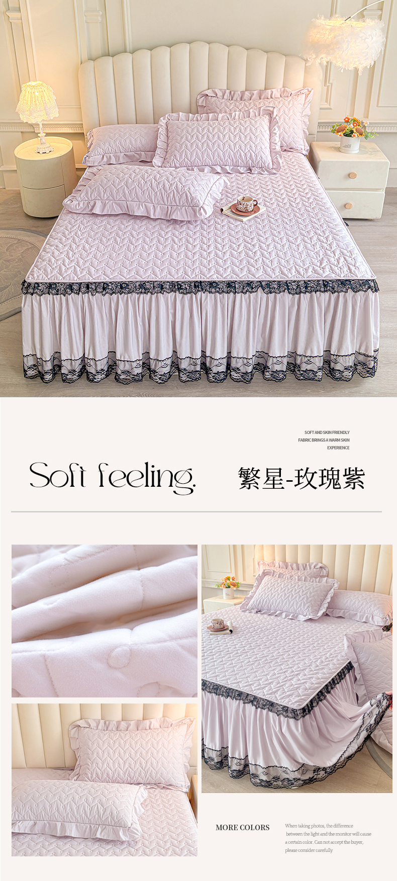 • 91家纺网 家纺一手货源 找家纺 (总)笠裙家纺 2025新款蕾丝水洗棉夹棉加厚单床裙-繁星,繁星-豆沙,繁星-玫瑰粉,繁星-玫瑰紫,繁星-米白,繁星-浅灰,繁星-浅咖