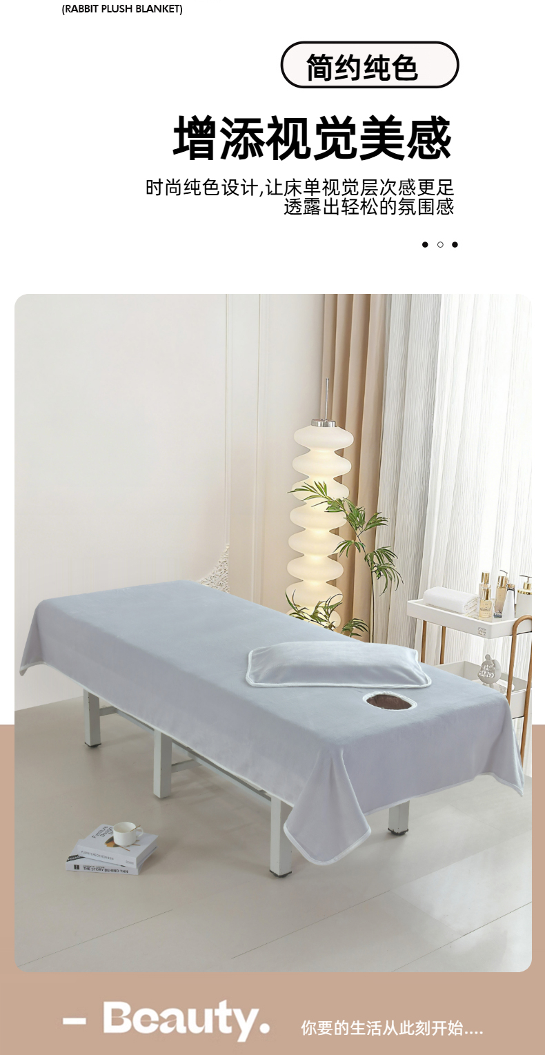 商品名称:(总)千姿坊 2025新款秋冬加厚牛奶绒纯色美 容床床单两件套有洞单件床罩
