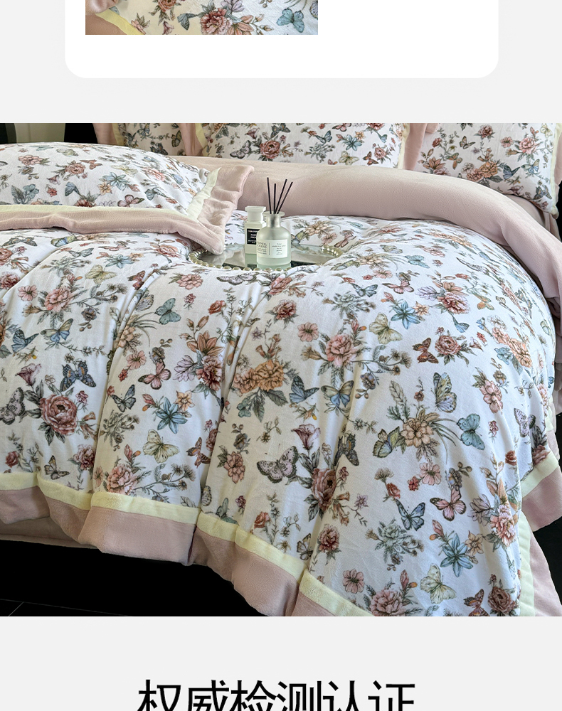 (总)娇逸家居 2025新款高克重A类数码印花牛奶绒双拼边款四件套,采薇灰,扶桑,浅影,秋灵粉,秋灵黄,秋灵绿,舜华粉,采薇米,舜华绿,仙客,栩蝶,璎珞,玉树,芸芙