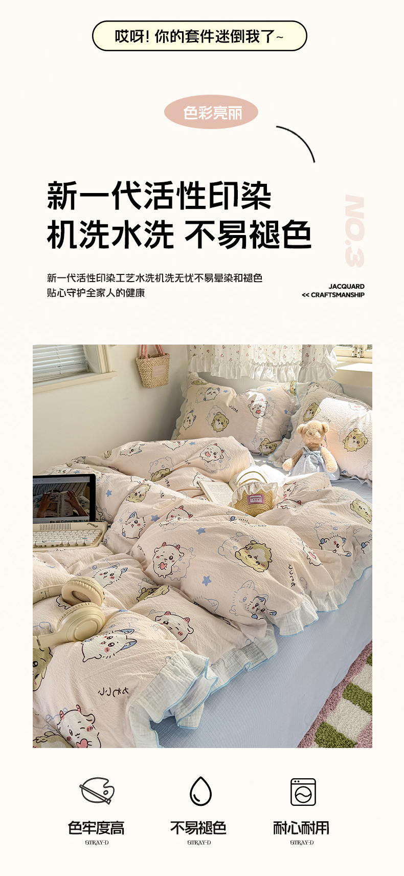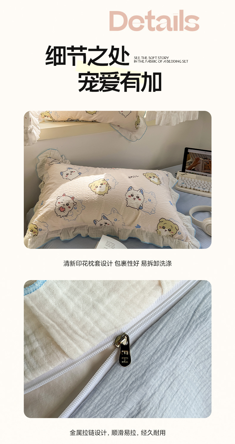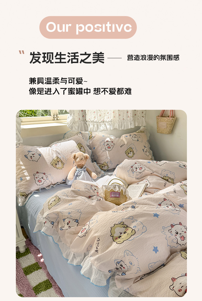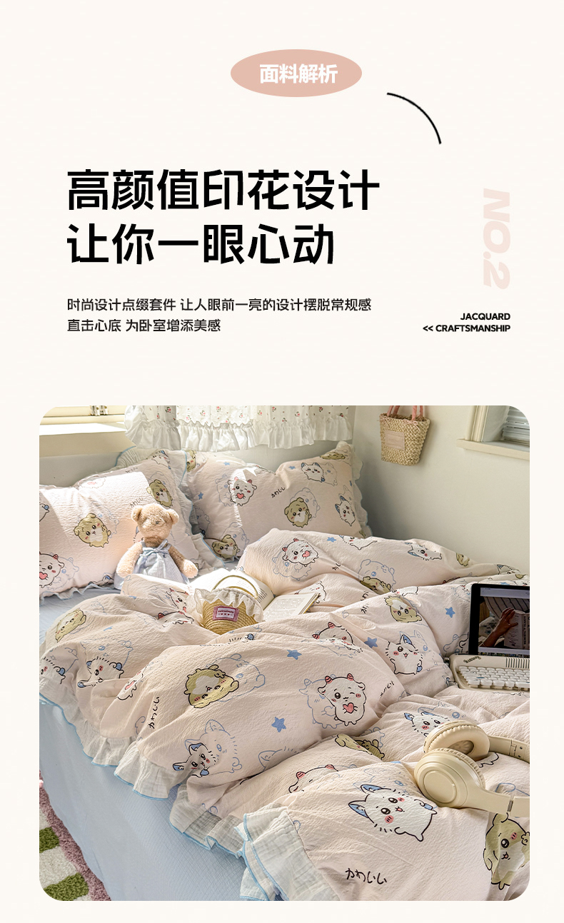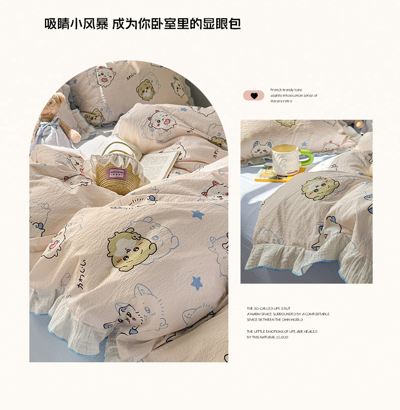 当前位置: 91家纺网 > 商品网购 > 床品套件 > 四件套 > 其它四件套 > 繁花家居 2025新款高弹线云感木棉多层纱花边超软四件套 圣代甜喵-蓝