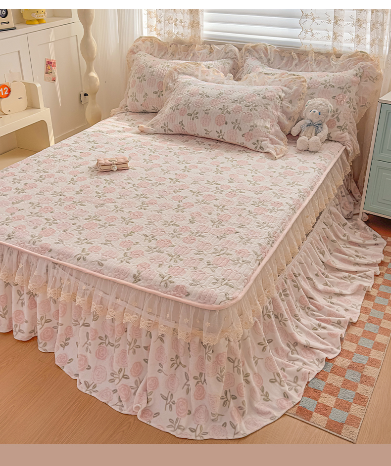 (总)家之硕家纺 2025新款立体雕花可拆洗牛奶绒单床裙系列,爱莎粉,安妮绿,彩虹糖-浅蓝,花韵,秘密花园,田园生活