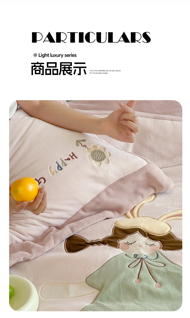 商品名称:泽西家纺+V17798841158发大图 2025新品秋冬加厚保暖240克奶肤绒宽边卡通贴布绣牛奶绒四件套 童梦园一粉
