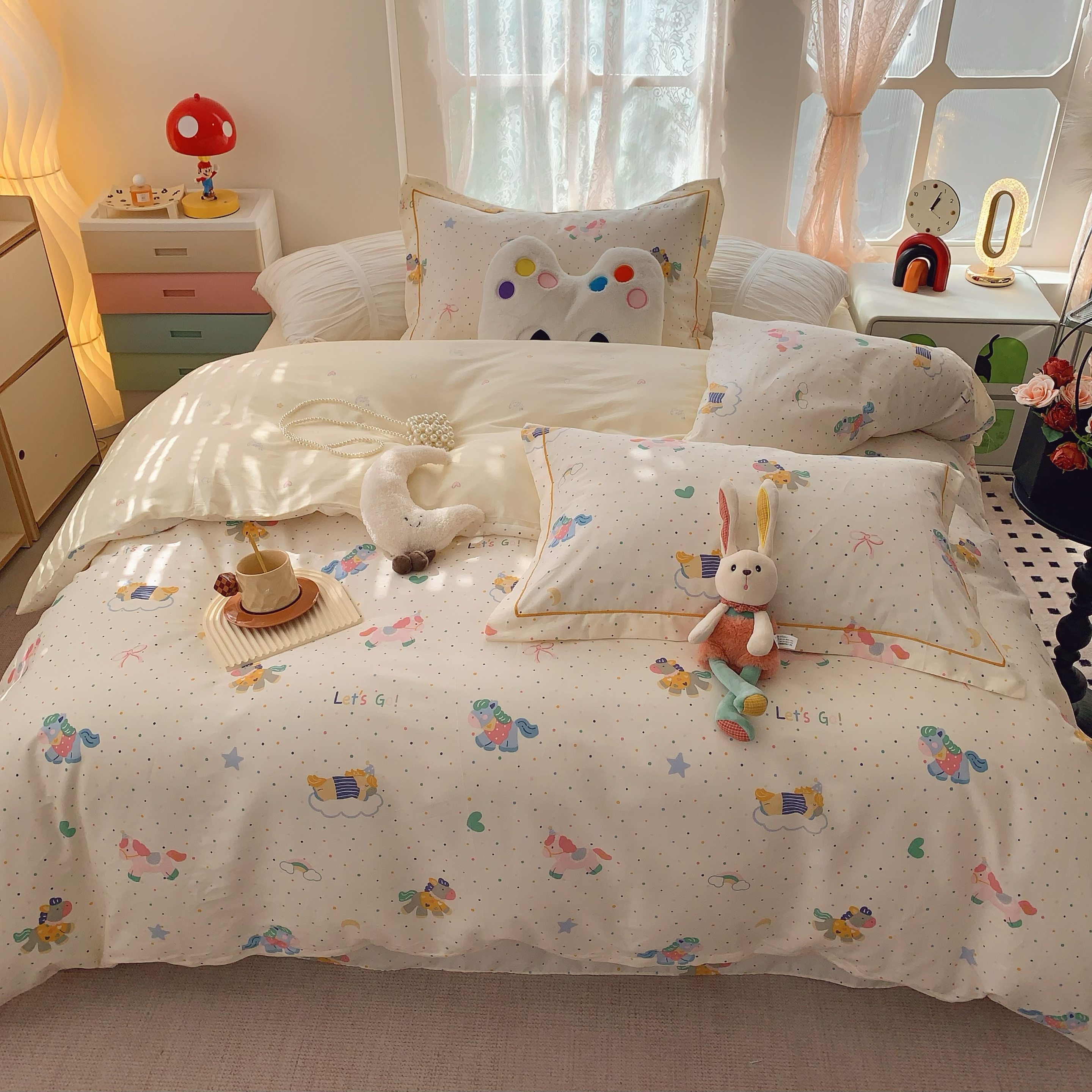 (总)莱豫家纺 2025新款小清新全棉纯棉四件套,爱心豹纹,白薇,春黛,芳华,锦绣咖,锦绣米,可爱狗狗咖,太空超人,甜橘,童年,仙本娜,小飞马,小小花园,星星人黄,星星人蓝,雅蔓