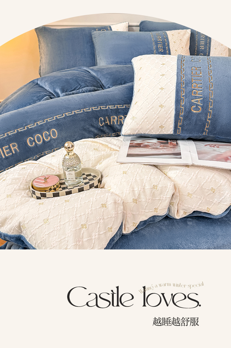 当前位置: 91家纺网 > 商品网购 > 床品套件 > 四件套 > 牛奶绒四件套 > 灰鲸 2025新款牛奶绒拼接刺绣雕花四件套-可可 可可-露娜粉