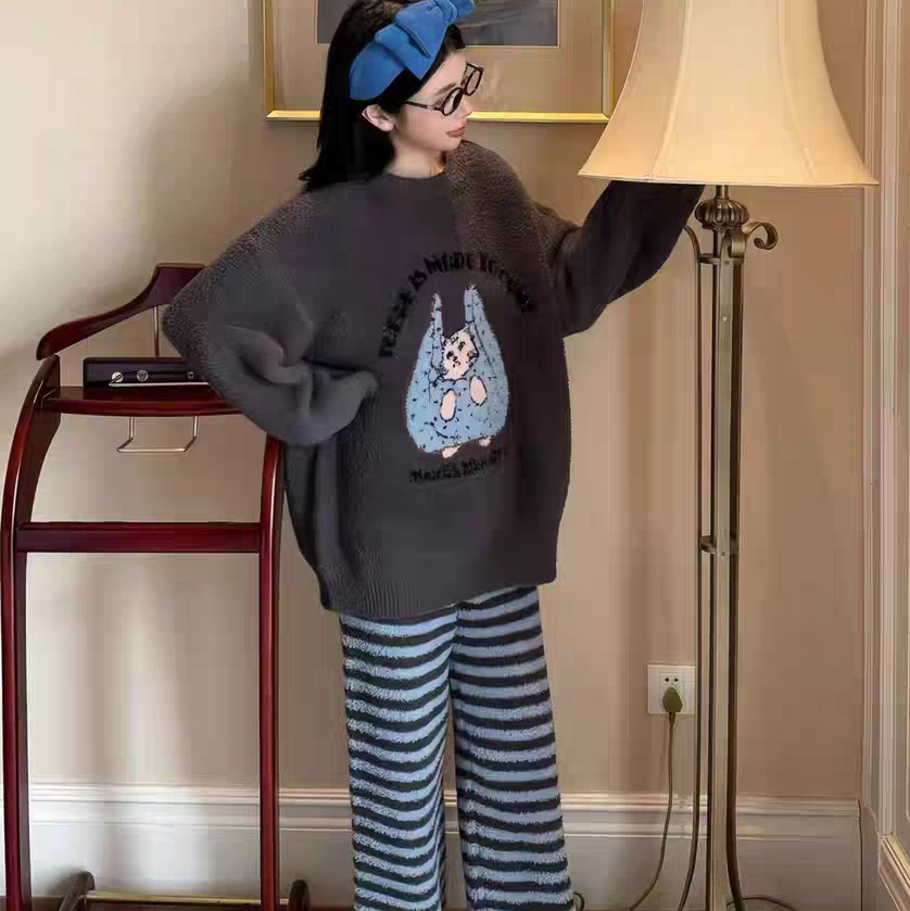 当前位置: 91家纺网 > 商品网购 > 居家日用 > 睡衣/家居服套装 > (总)妍景家居生活馆 2025新款软绵绵-手拎袋条纹猫咪