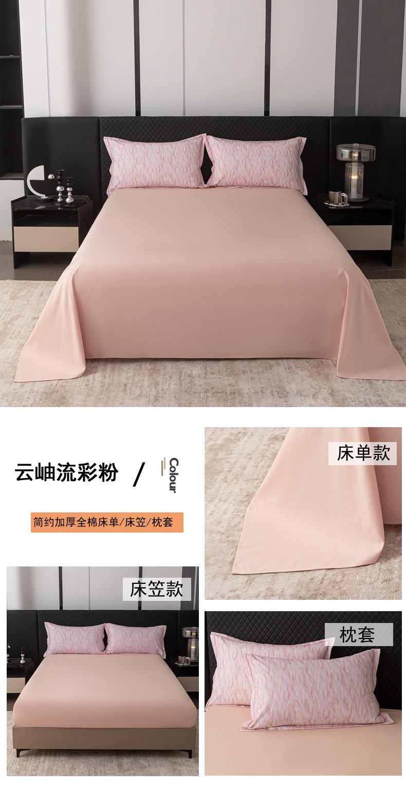 商品名称:贝兰仙奴 2025新款全棉磨毛多规格系列单床笠 云岫流彩粉