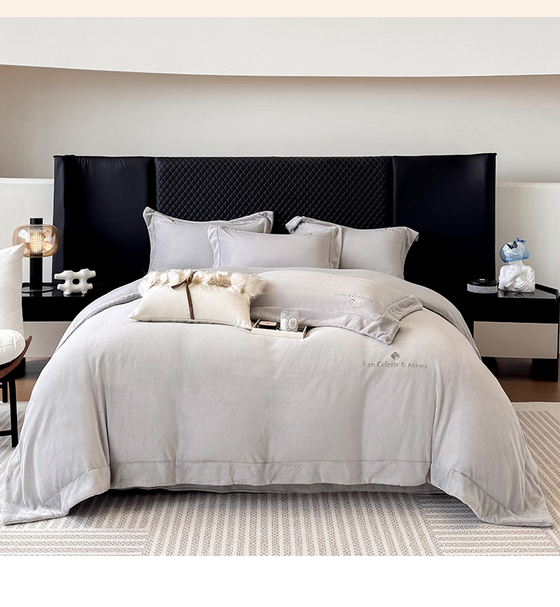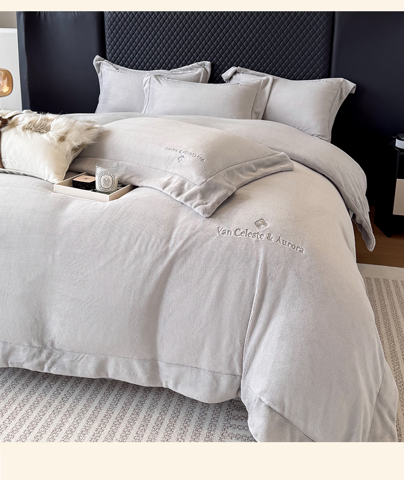 商品名称:泽西家纺+V17798841158发大图 2025新品秋冬加厚保暖240克奶肤绒简约风刺绣牛奶绒四件套-梵克雅宝 梵克雅宝-高级灰