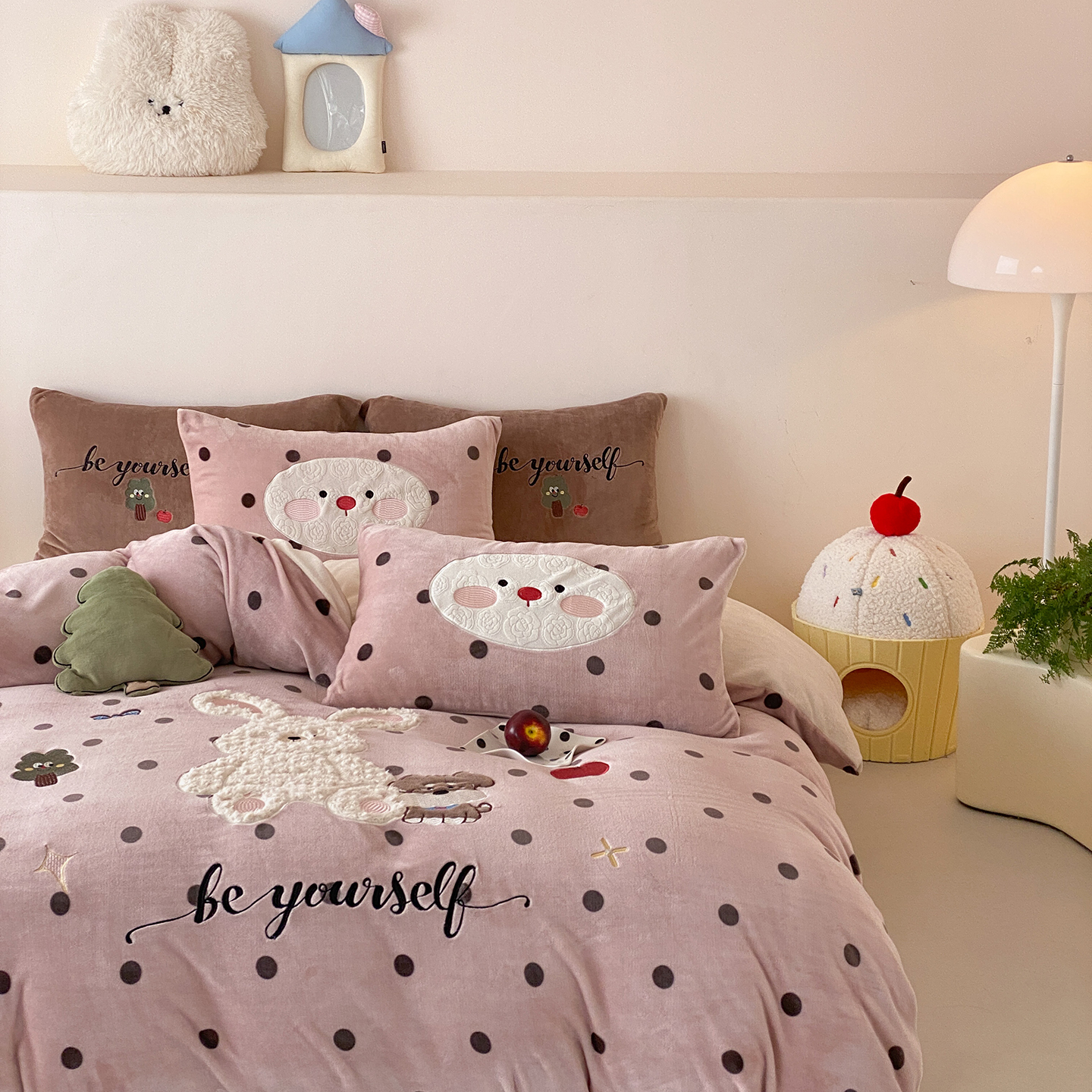 (总)星野 2025新款高克重牛奶绒贴布绣四件套-波点兔