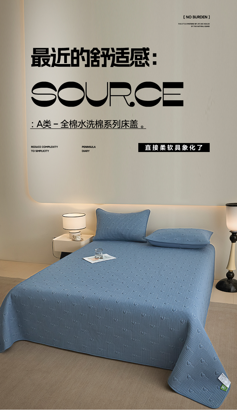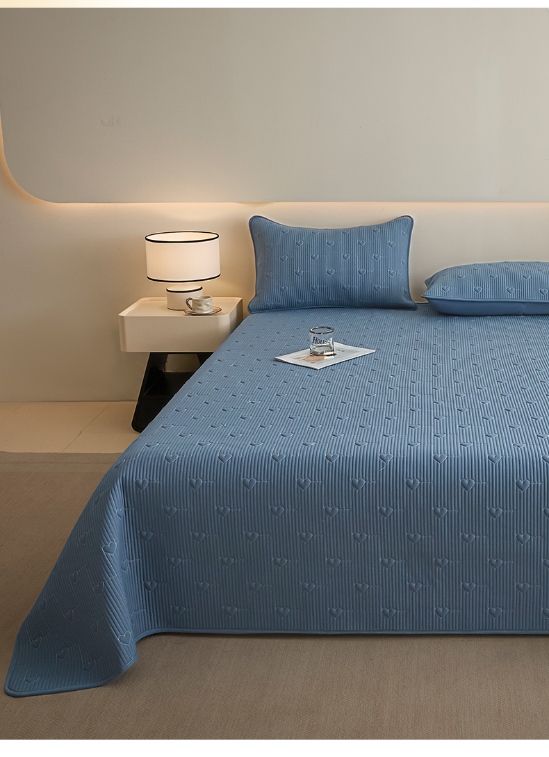 • 91家纺网 家纺一手货源 找家纺 芬晴家纺 2025新款A类全棉水洗棉床盖-心欢系列-遇见系列 心欢-雾蓝