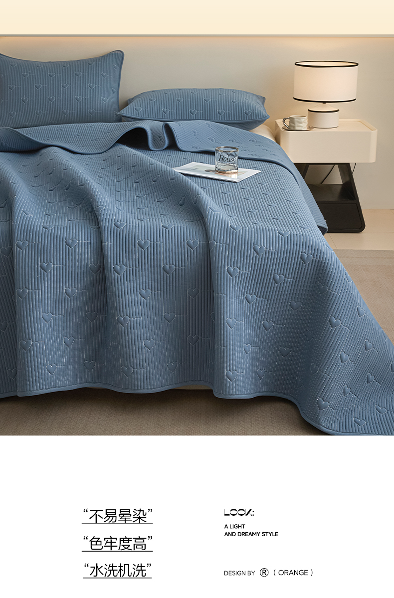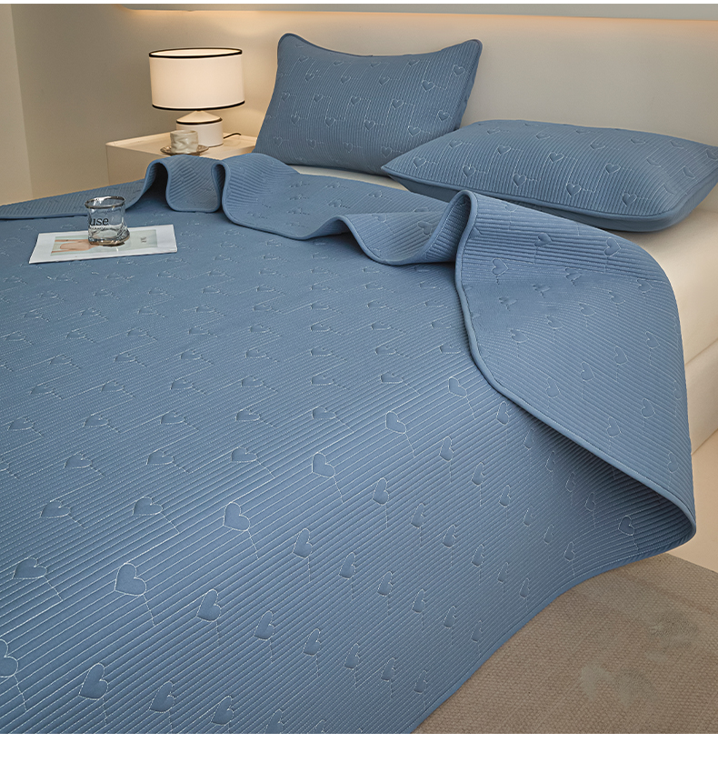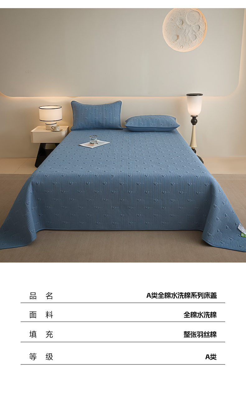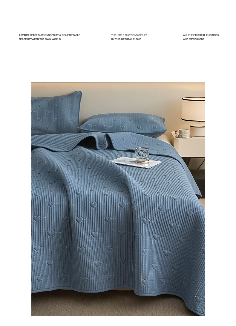 芬晴家纺 2025新款A类全棉水洗棉床盖-心欢系列-遇见系列 心欢-雾蓝