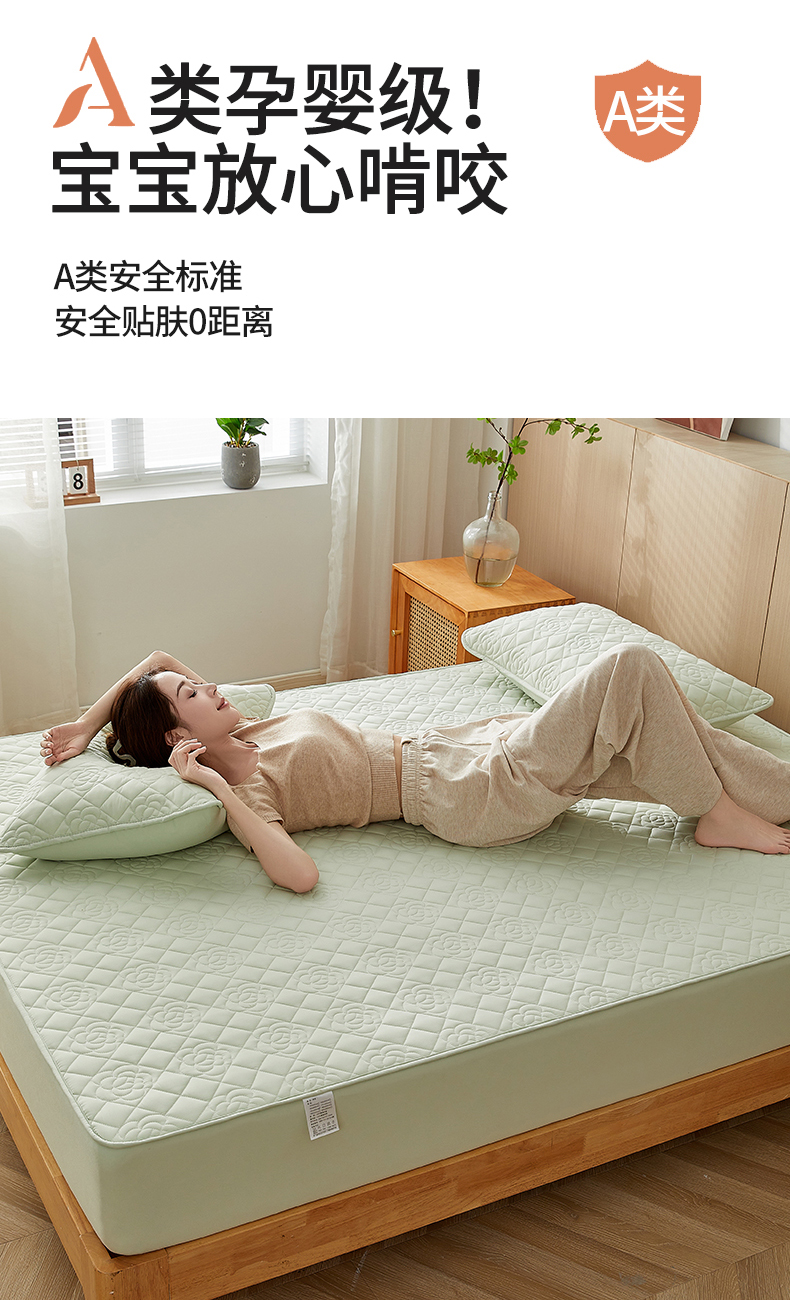 (总)卓越家纺 2025新款A类全棉夹棉床护垫,组合,水绿,浅灰,深灰,驼色,豆沙,奶白